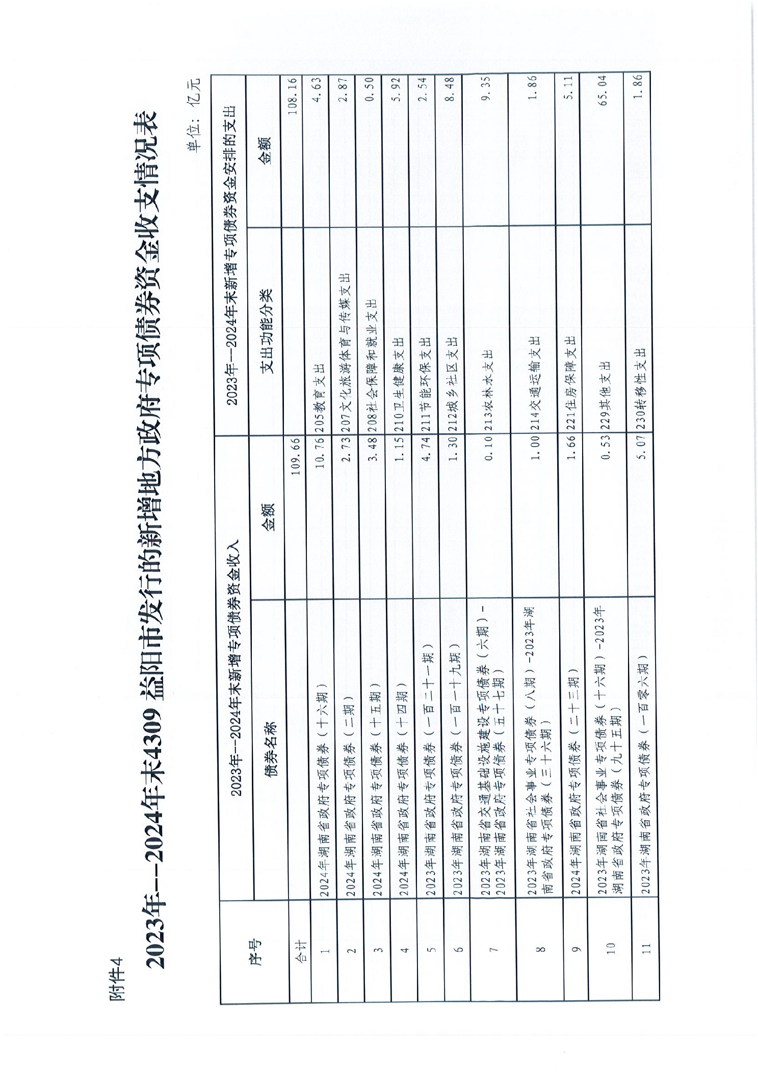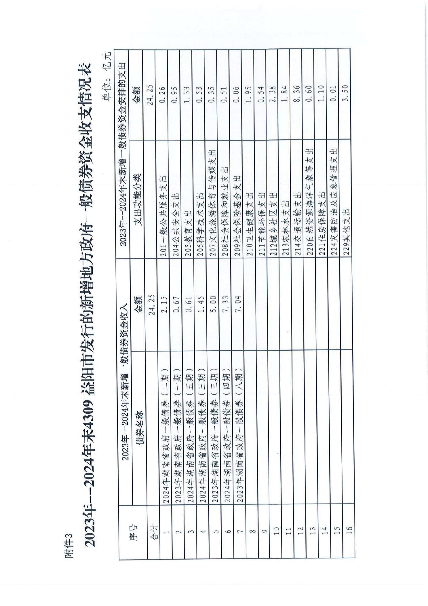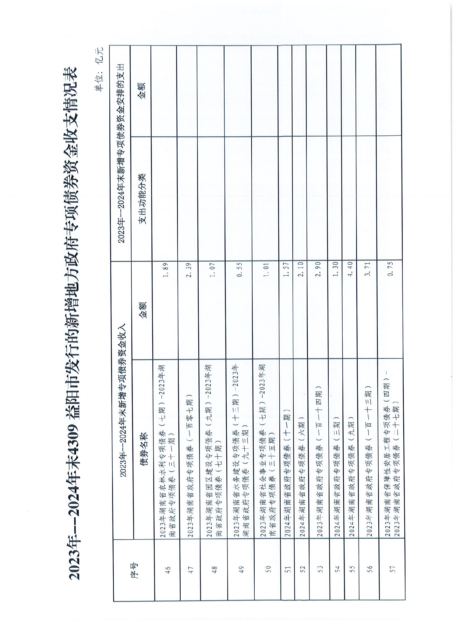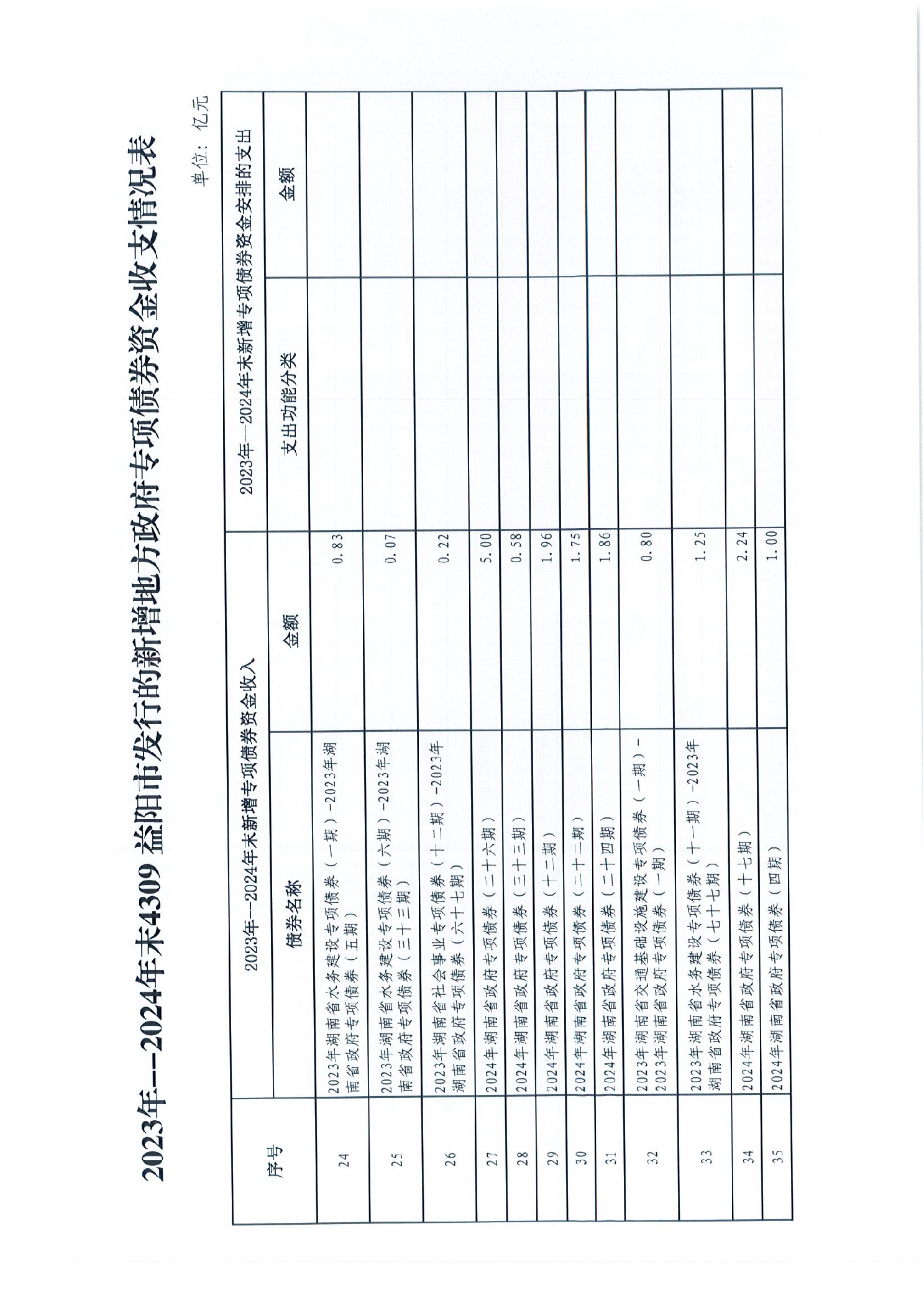 2023年—2024年益阳市新增地方政府债券存续期公开套表