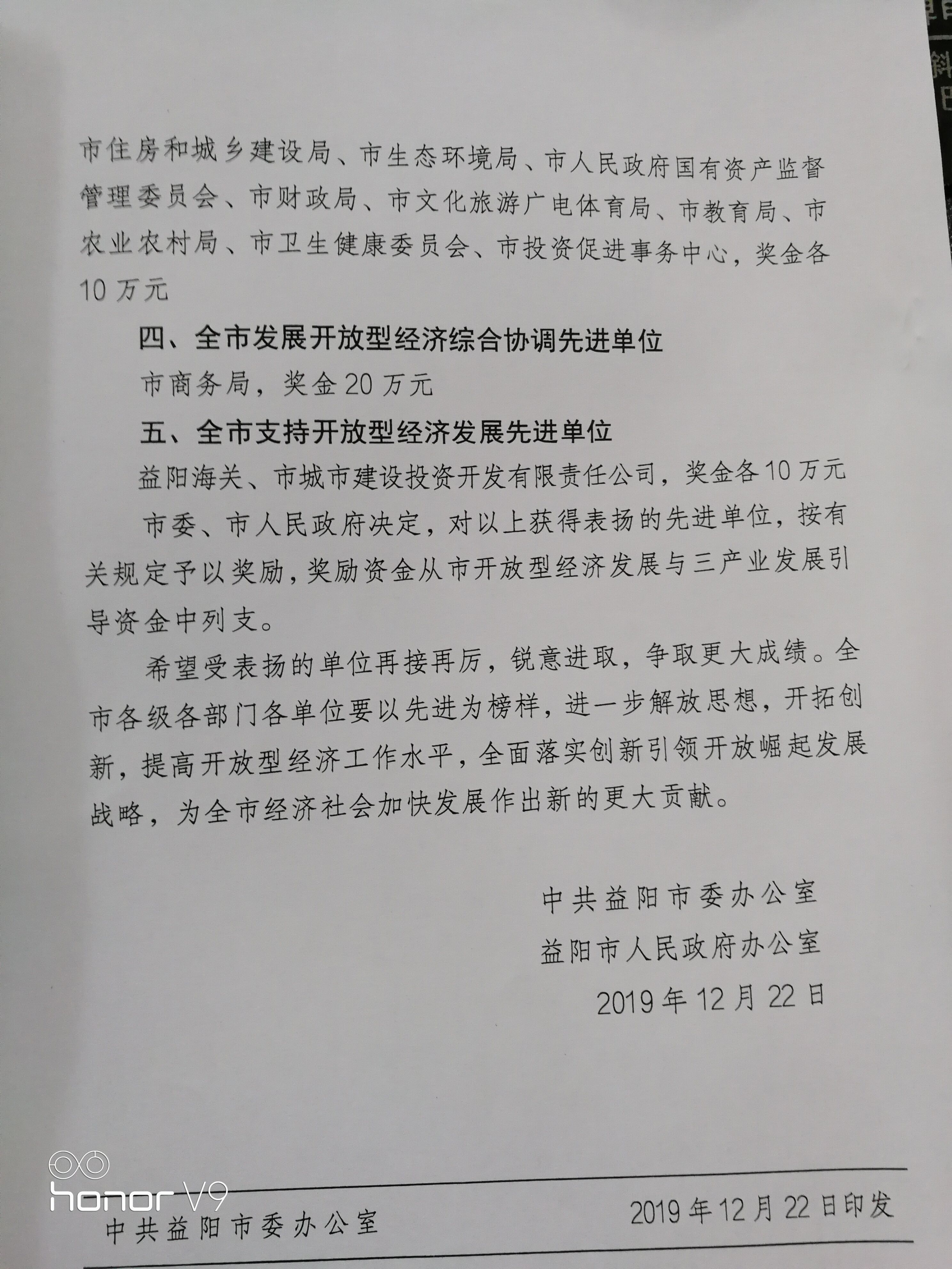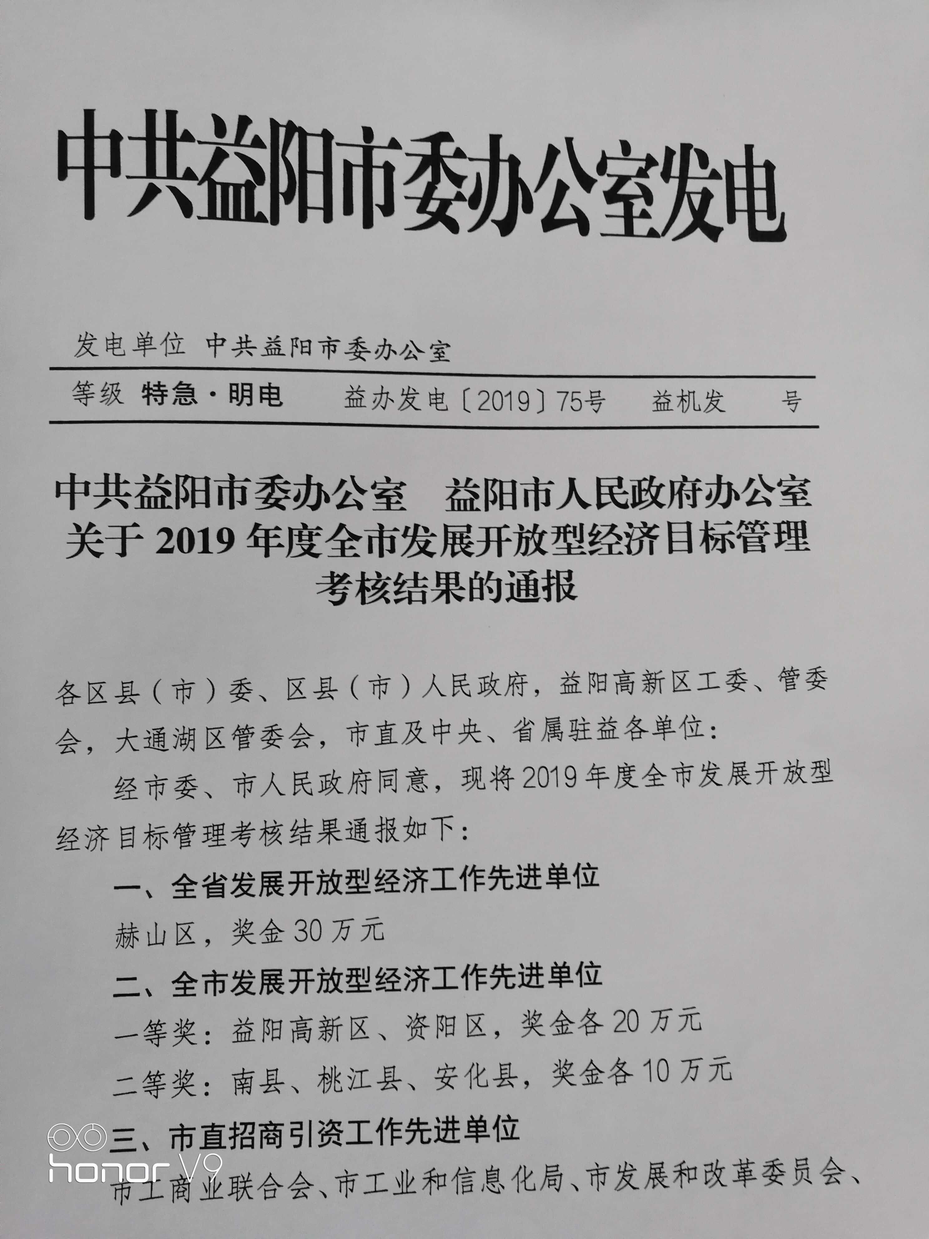 关于2019年度全市发展开放型经济目标管理考核结果的通报