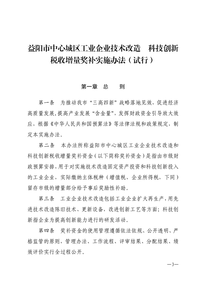 关于印发《益阳市中心城区工业企业技术改造 科技创新税收增量奖补实施办法(试行)》的通知