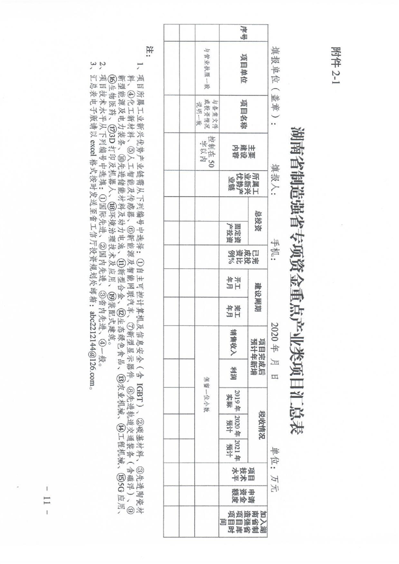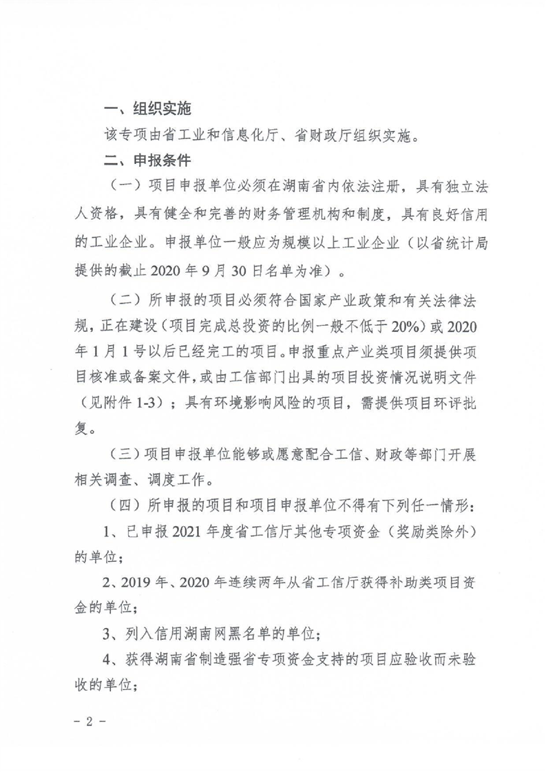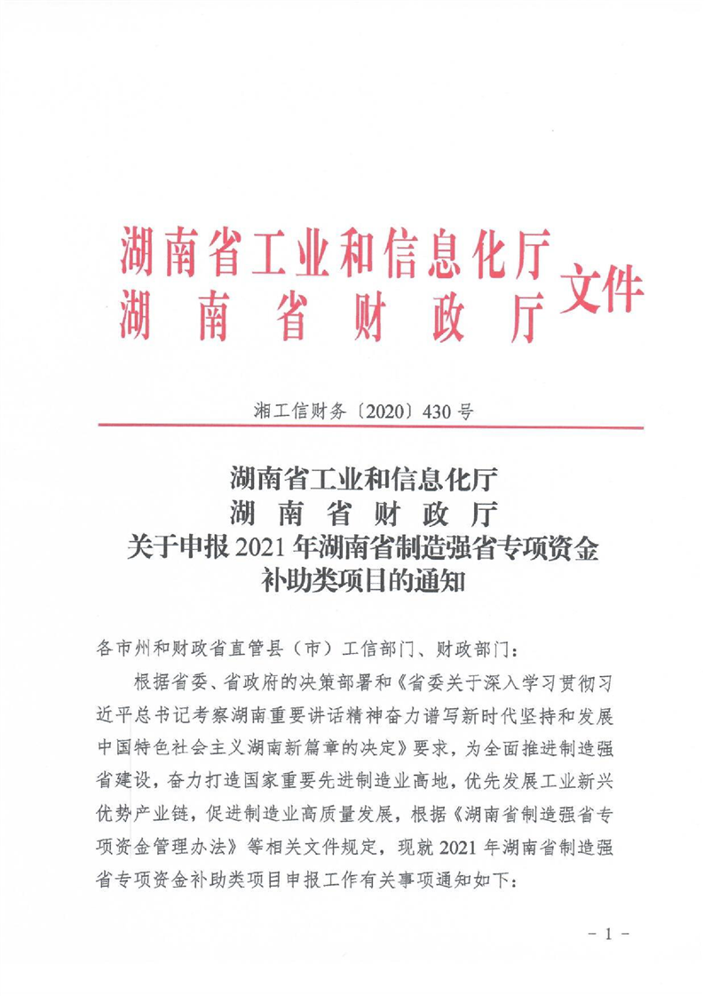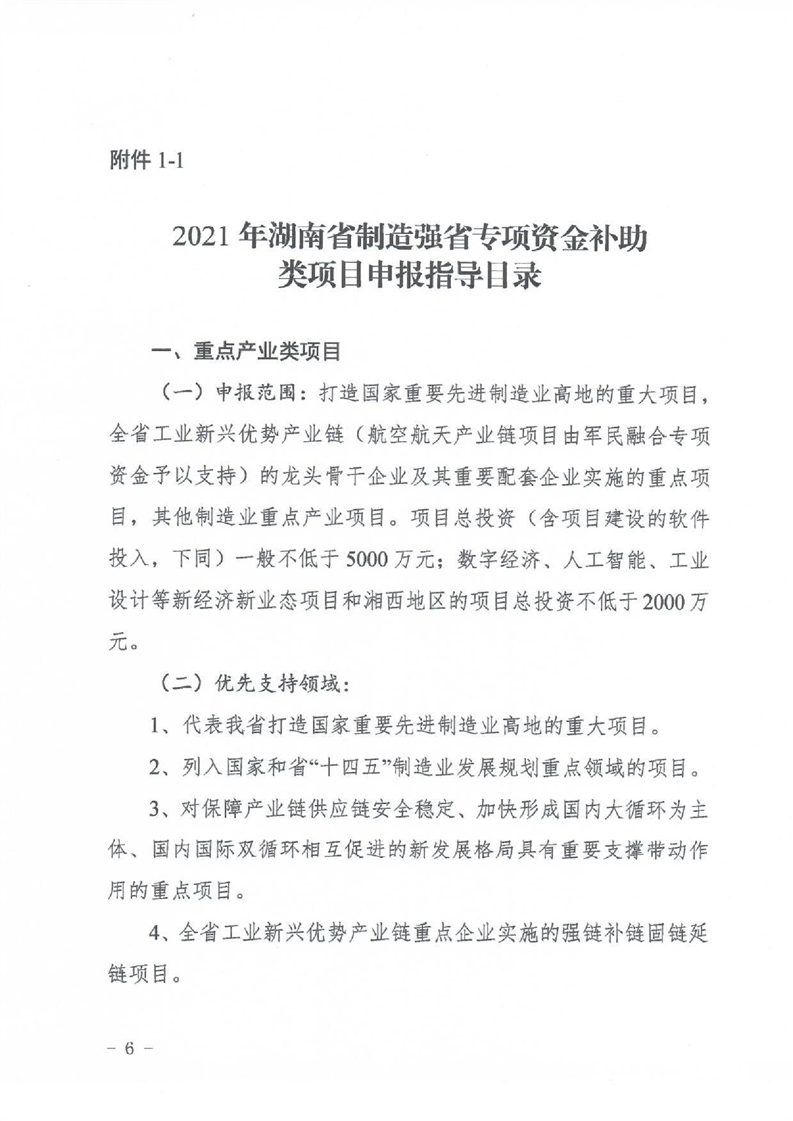 关于申报2021年湖南省制造强省专项资金补助类项目的通知