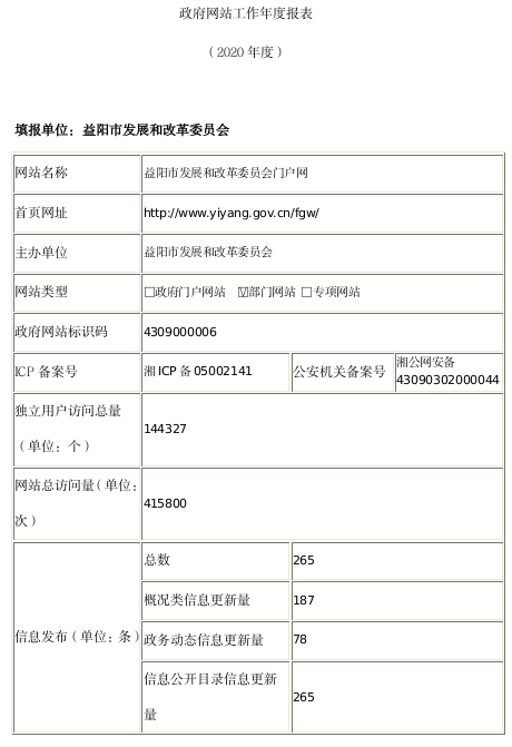 益阳市发展改革委政府网站工作年度报表(2020年度)