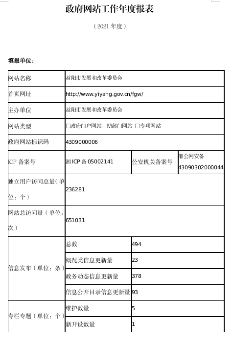 益阳市发展改革委政府网站工作年度报表(2021年度)