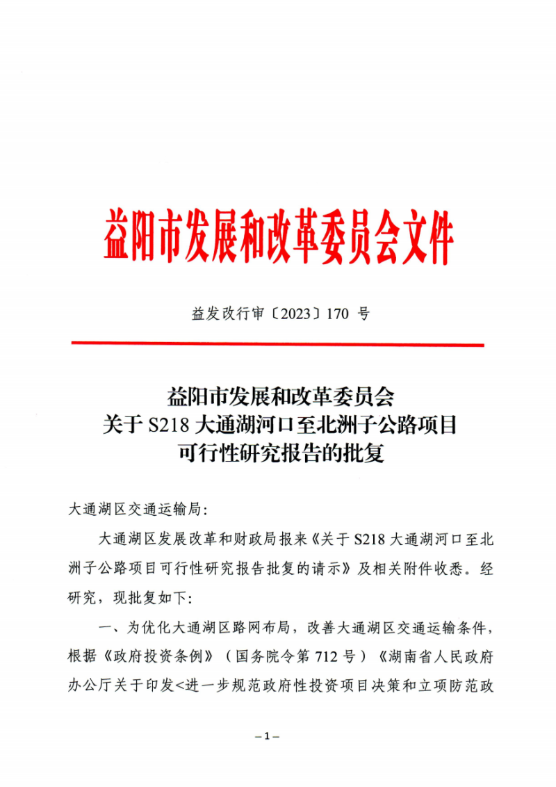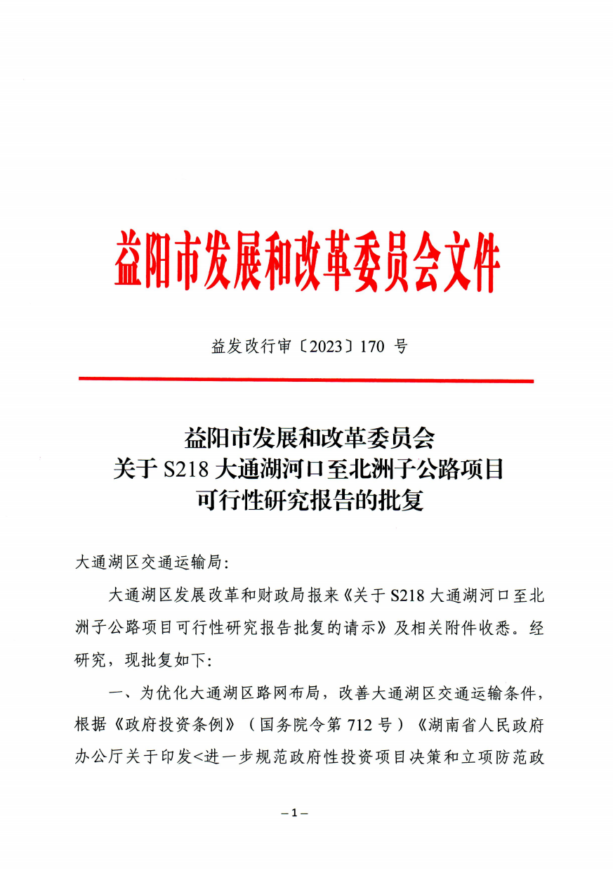 关于S218大通湖河口至北洲子公路项目可行性研究报告的批复.pdf