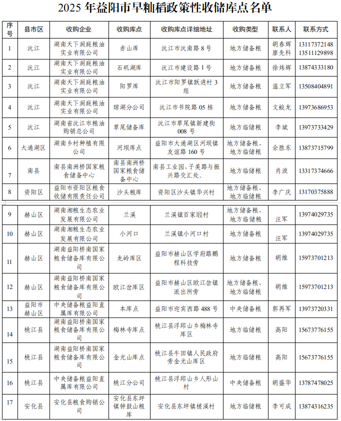 附件:1.2025年益阳市早籼稻政策性收储库点名单