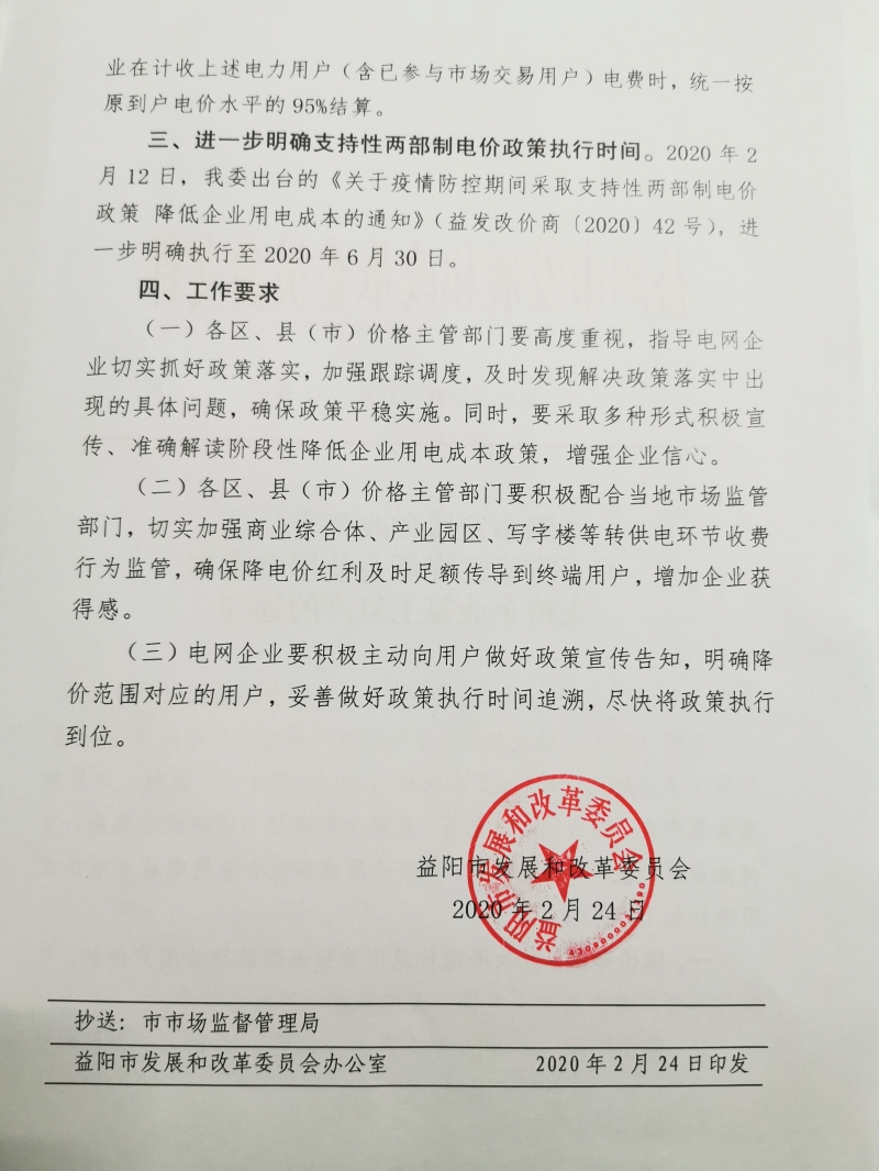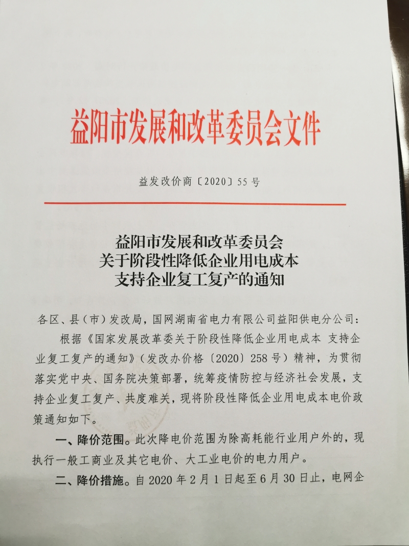 【通知公告】益阳市发展和改革委员会关于阶段性降低企业用电成本支持企业复工复产的通知
