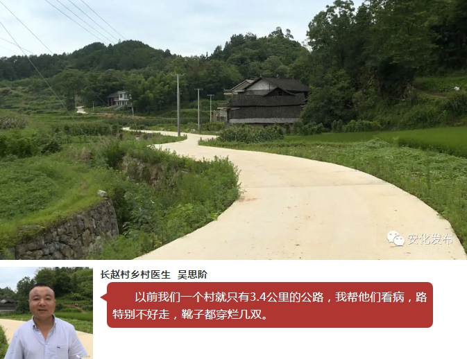 在2019年,袁新球带领工作队在没有任何补助的情况下,克服各种困难和阻力,自筹资金380多万元,硬化了9条通组公路,出村通道全部拓宽为4.5米以上的硬化水泥路面。长赵村五个组的村民来村部再也不用绕道附近的葡萄村甚至新化县了。