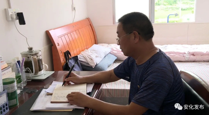 在乐安镇长赵村村委的办公室里,袁新球正在看着汇报资料熬着中药,袁新球作为益阳市长驻长赵村帮扶工作队的一员,虽然身患高血压等多种慢性病,但仍不怕苦、不怕累、不畏难,一心扑在帮扶工作上。乐安镇长赵村位于安化和新化两县的交界山区,地域面积大,偏远闭塞,交通十分不便。二村合一仅有一条3.4公里长、3.5米宽的硬化公路,有5个组与村部不直通公路,从镇上到村里翻山越岭要走一个多小时。