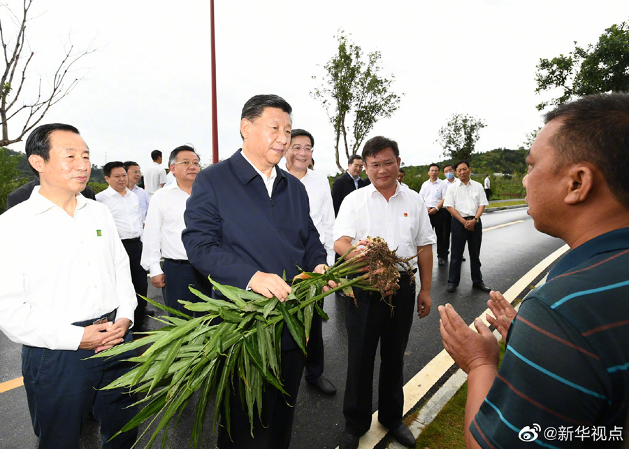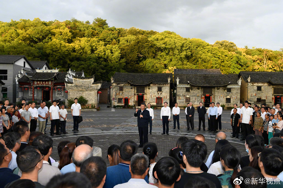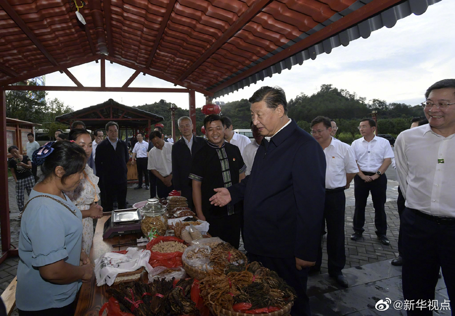习近平总书记16日赴湖南考察调研。当天下午,他来到郴州市汝城县文明瑶族乡沙洲瑶族村“半条被子的温暖”专题陈列馆、村服务中心和卫生室、沙洲现代农旅示范基地、文明瑶族乡第一片小学,以及村民家中,了解当地开展红色教育、发展扶贫产业、巩固脱贫成果等情况。(文字记者张晓松、朱基钗 摄影记者李学仁、谢环驰、岳月伟)