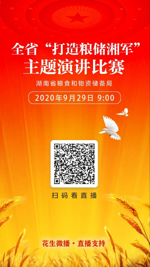 2020年全省粮食和物资储备系统“打造粮储湘军”主题演讲比赛于9月29日上午9:00拉开帷幕,小伙伴们快来围观吧!