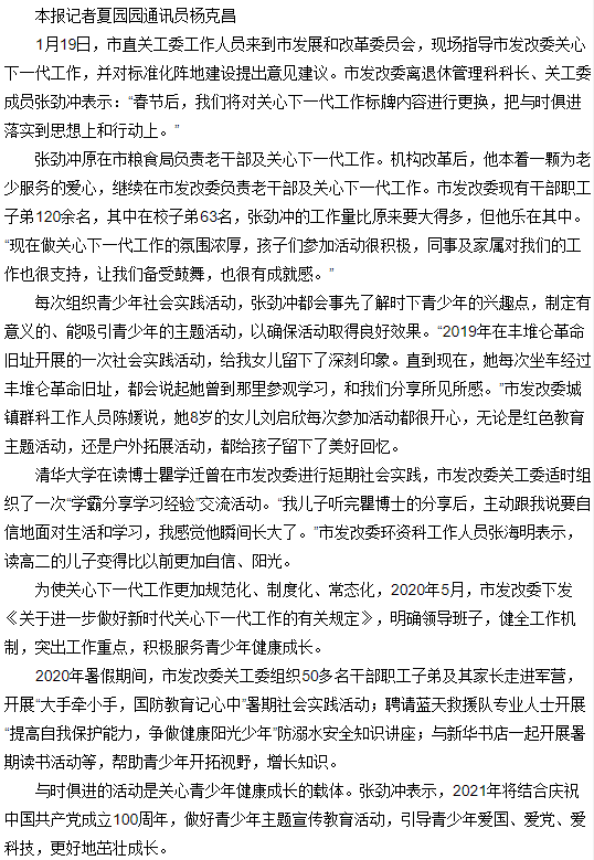 【发改动态】爱心护航青少年健康成长——记市发改委机关工委成员张劲冲【转载】