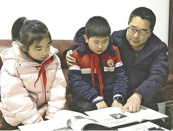 张劲冲与青少年一起阅读《中国火炬》杂志