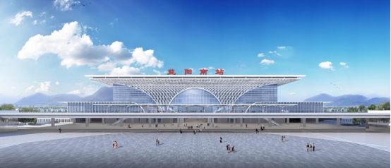 益阳南站位于赫山区寨子仑片区,车站类型为线侧+高架式旅客站房。站房及其相关工程总建筑面积约为103687㎡,其中站房建筑面积35962㎡,站房主体为3层,局部4层,建筑高度为26.845m,车站站场规模2台6线,到发线有效长度650m。站房主体结构形式为钢筋混凝土框架结构体系,站台雨棚包含进站通廊跨线大雨棚和站台雨棚,均为钢结构形式,进站通廊雨棚为钢框架结构形式,落客平台雨棚采用单柱双边悬挑结构形式。