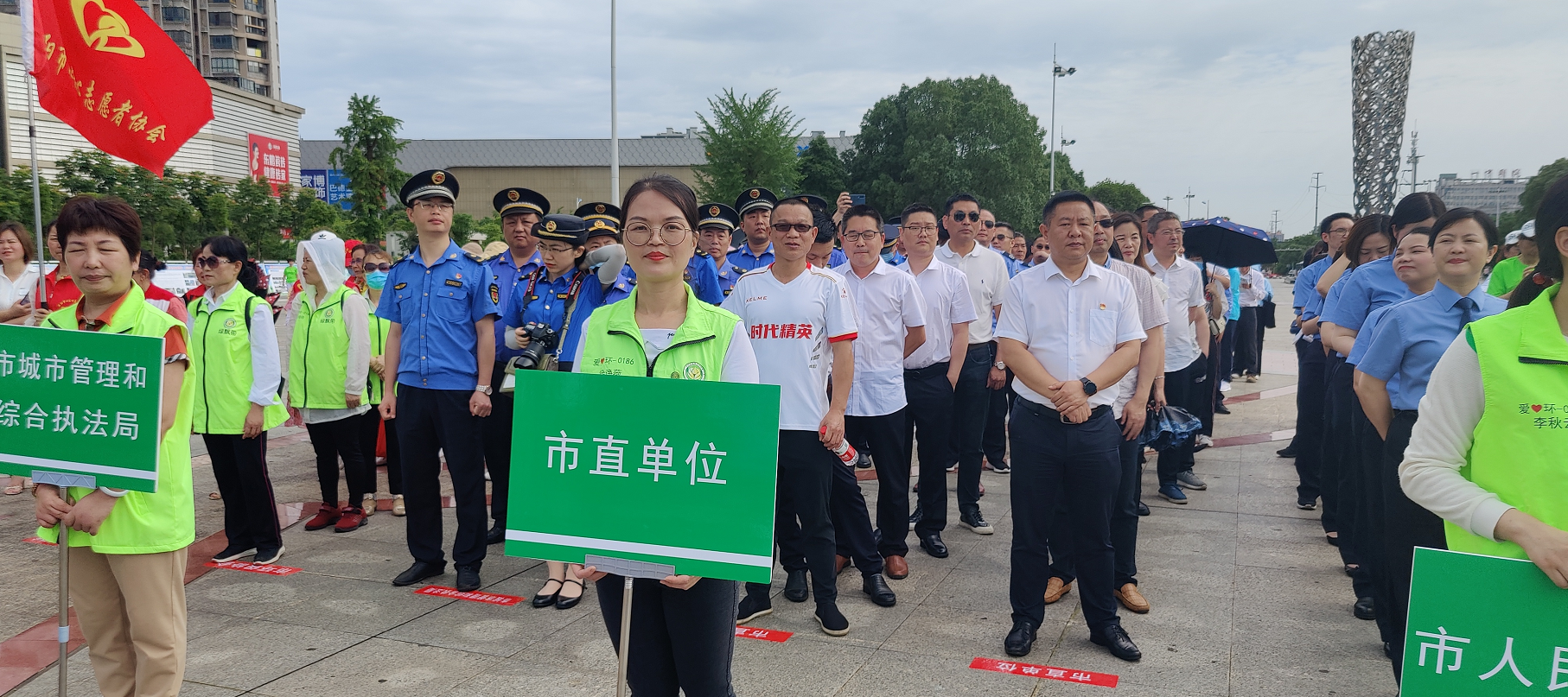 6月4日上午九点,市发展改革委志愿者开展“美丽中国·我是践行者”主题实践活动,参加由市生态环境局主办、市文明办等单位协办的六五环境日暨人与自然和谐共生主题志愿活动,活动在佳宁娜广场举行。市人大、市政府、市政协相关领导出席了本次活动。