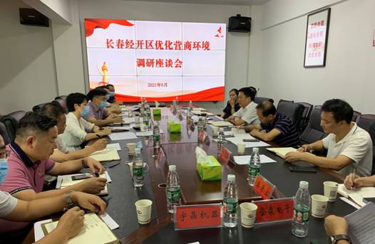 调研以座谈会的形式开展,会上长春经开区汇报了优化营商环境方面的先进经验及做法,将优化营商环境贯彻园区项目建设、生产经营、风险防控始终,同时反映了目前园区营商环境存在的典型、高频、突出问题,并就园区对优化营商环境,尤其是园区赋权、要素保障、行政审批服务机制等方面提出了意见建议。资阳区区委副书记、代区长黄瑛及区优办、工信等相关部门负责人进行了补充汇报。