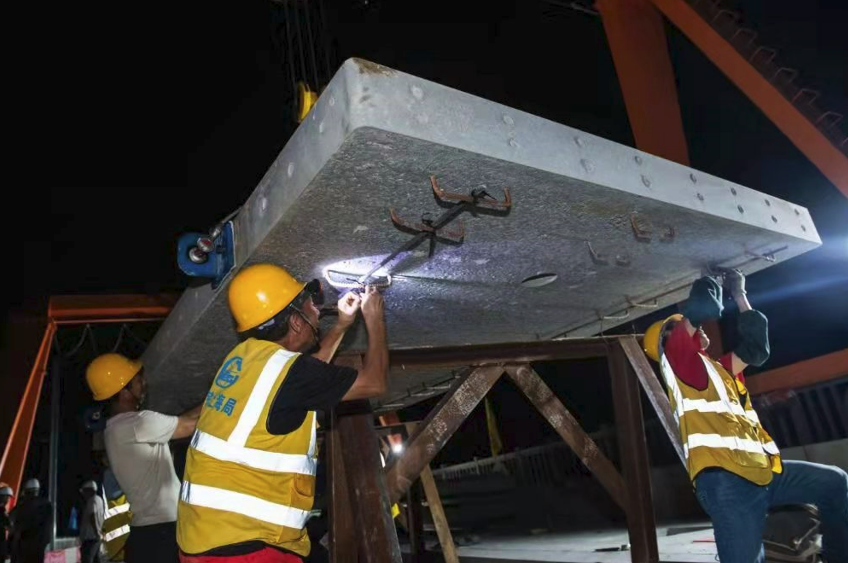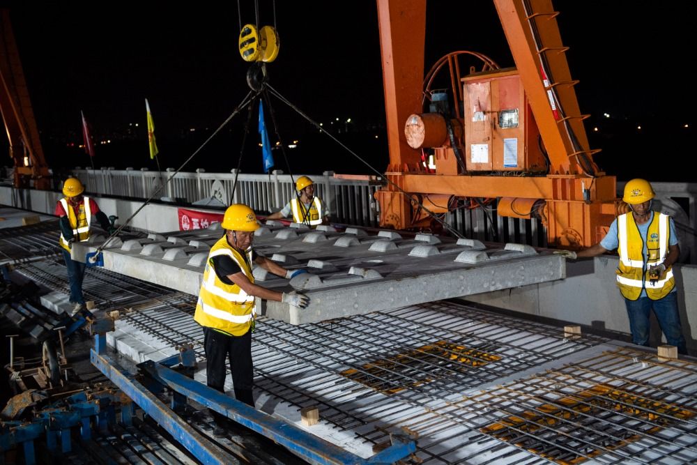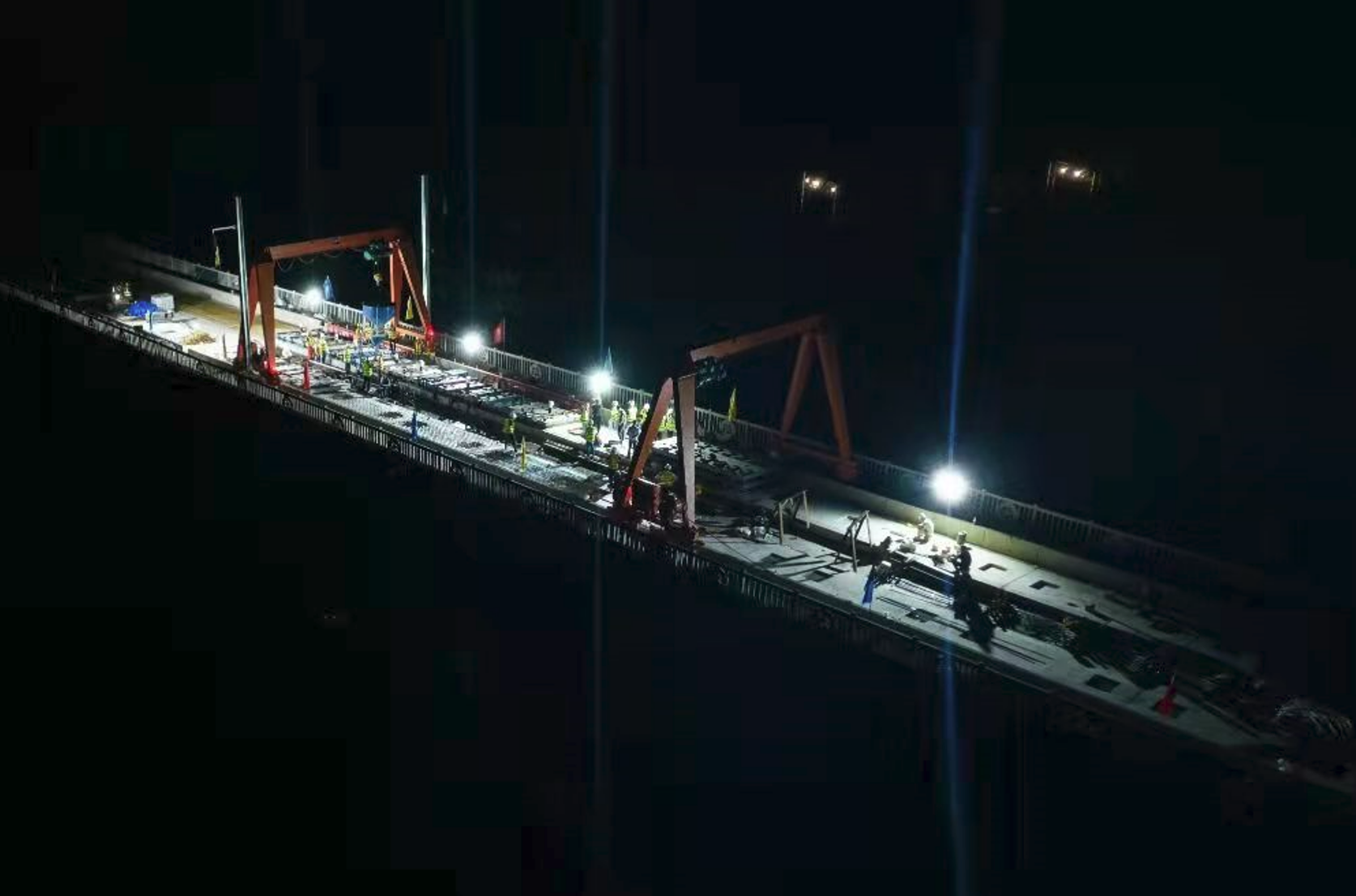 据了解,CRTS III型无砟轨道板在施工过程中受光照、温度外部环境影响较大,对气温要求高、精度控制严。为此,该项目坚持试验先行、样板引路,先期开展线下工艺性试验,对施工工序、工艺进行优化改进,并采取白天对轨道板进行粗铺施工,夜晚进行精调和混凝土浇筑的交叉作业方式,有效减少外部环境影响,将轨面高程误差严格控制在2毫米以内,确保了无砟轨道的平顺度。