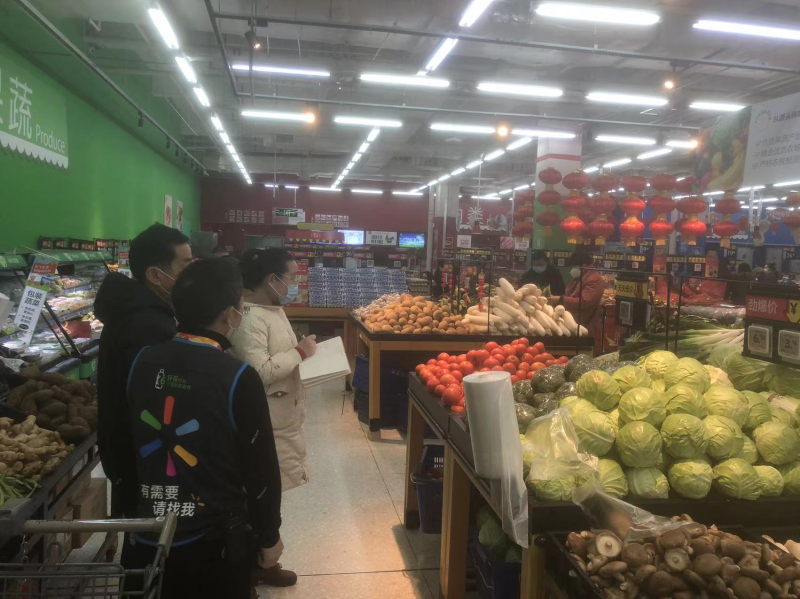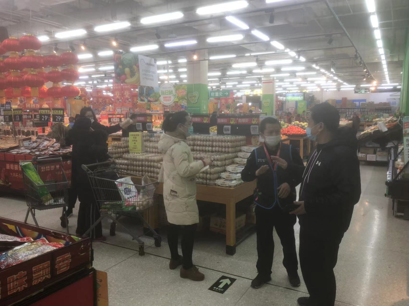 春节临近,为切实加强春节期间市场保供稳价工作,保持重要民生商品和防疫物资价格总体稳定,保障群众基本生活,1月27日,我委价格监测工作人员深入沃尔玛超市、桃花仑菜市场、海吉星农产品物流园、益丰大药房等地,重点对粮油、肉、禽蛋、蔬菜、奶、口罩等居民生活必需品及防疫物资的贮存销售情况和价格水平进行巡视巡察,并了解商务部门对春节市场保供工作的安排情况。