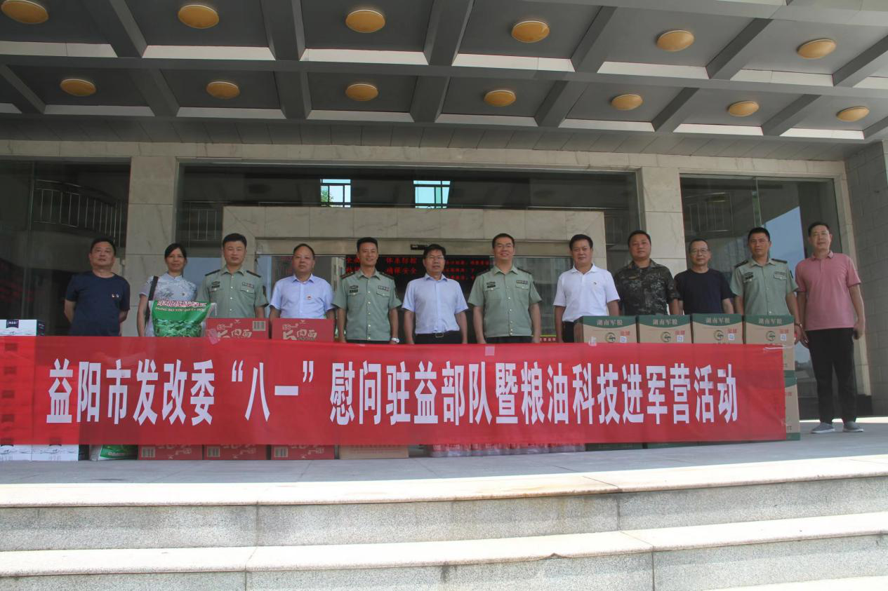 7月27日,在中国人民解放军建军95周年来临之际,市发展改革委党组书记、主任胡跃龙一行赴市武警支队等6个部队基层伙食单位开展“八一”慰问和“粮油科技进军营”活动。胡跃龙强调,军粮供应站要积极主动与驻益部队加强沟通联系,全面了解部队官兵需求,努力提升军粮保障能力,进一步为部队提供优质的服务。