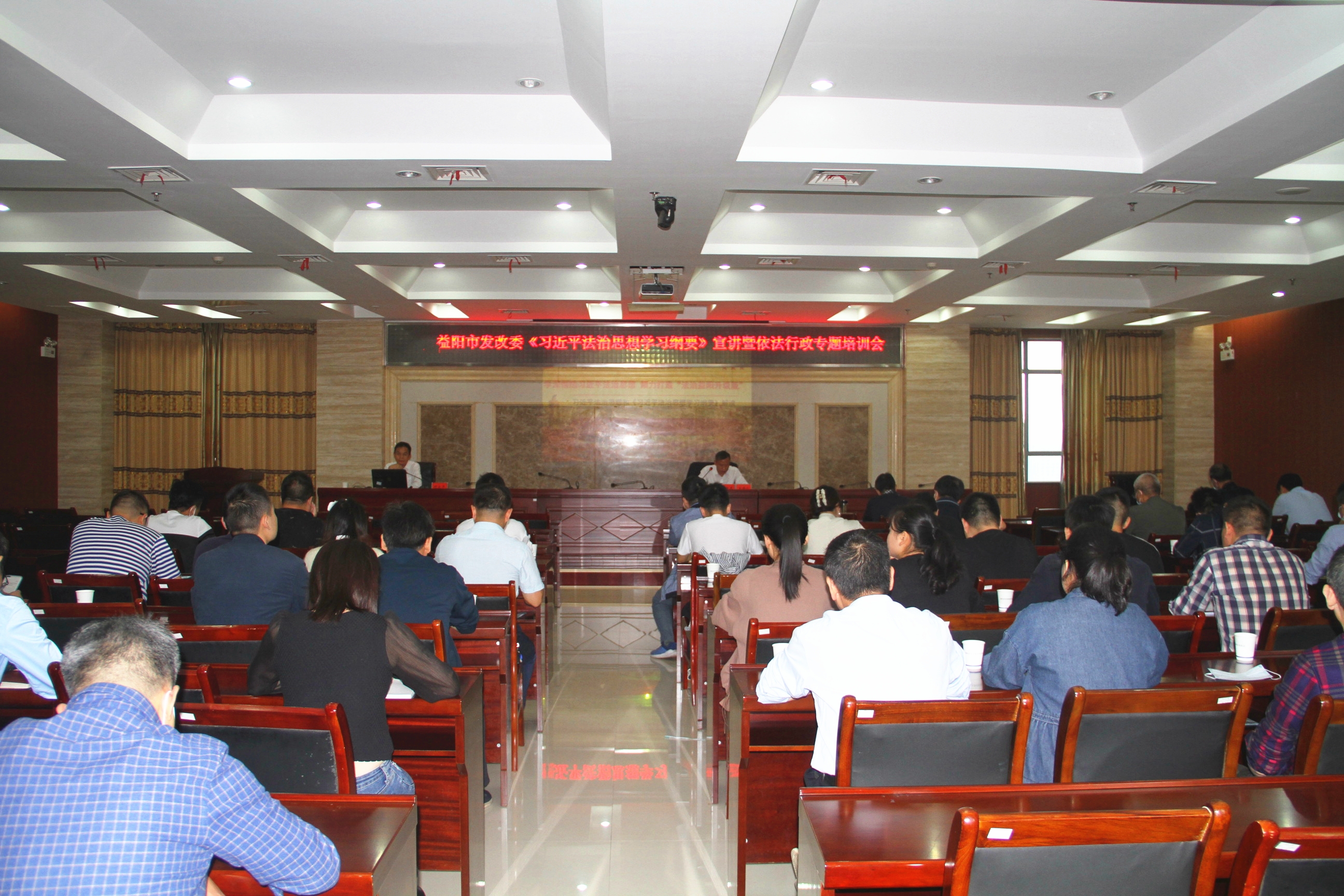 为深入学习贯彻习近平法治思想、落实党组中心组学法制度,提升全委干部职工依法行政能力和水平,9月23日,市发展改革委举办了《习近平法治思想学习纲要》宣讲暨依法行政专题培训会。会议由市发展改革委党组成员、副主任郭建民同志主持,委党组中心组成员、市管干部、机关科室和委属事业单位全体干部职工参加培训。