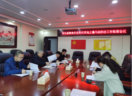 3月21日,安化县政府办常务副主任陈明礼在县政府办411会议室组织召开粮食安全和农用地土壤污染防治工作联席会议,县发展改革局、县农业农村局、市生态环境局安化分局、县市监局等成员单位参会。