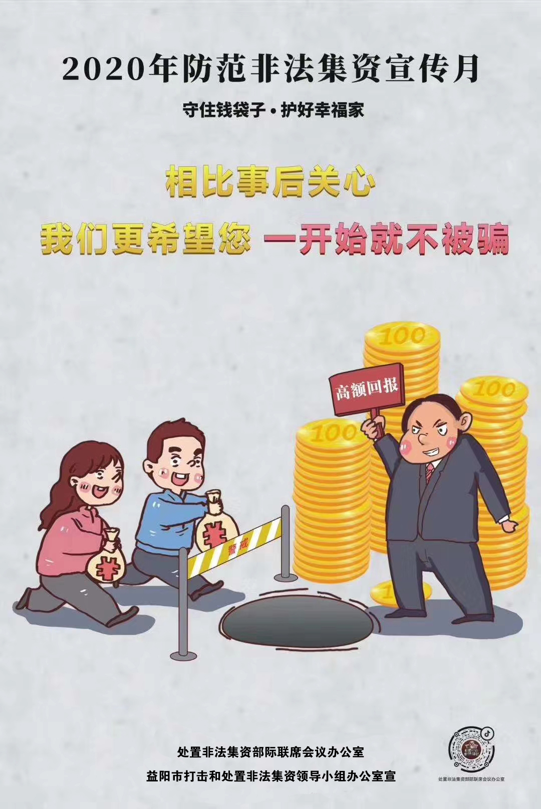 2020年6月是全国第8个防范非法集资宣传月。益阳市打击和处置非法集资领导小组办公室发布《关于开展2020年防范非法集资宣传月活动的通知》,将集中开展以“守住钱袋子·护好幸福家”为主题的防范非法集资宣传月活动,并确定6月15日为集中宣传日。