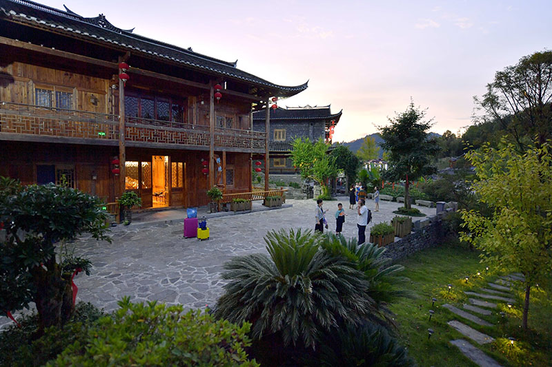 游客入住湖北省宣恩县椒园镇黄坪村一处吊脚楼民宿(2022年7月24日摄)。新华社发(宋文 摄)