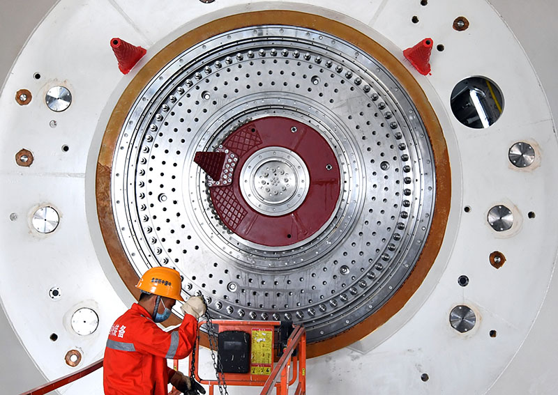 工人在位于河南省郑州市的中铁工程装备集团盾构机总装车间作业(2020年3月18日摄)。新华社记者 李嘉南 摄