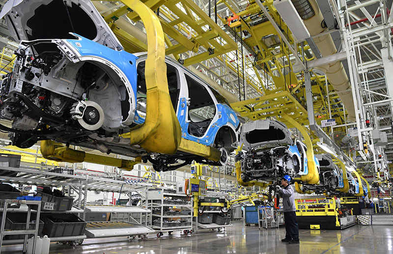 工人在安徽省安庆市一家汽车企业生产线上工作(2022年11月12日摄)。新华社记者 刘军喜 摄