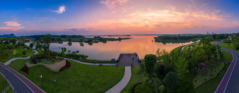 这是安徽省马鞍山市薛家洼生态园(无人机照片,2021年7月13日摄)。新华社发(童祖鸣 摄)