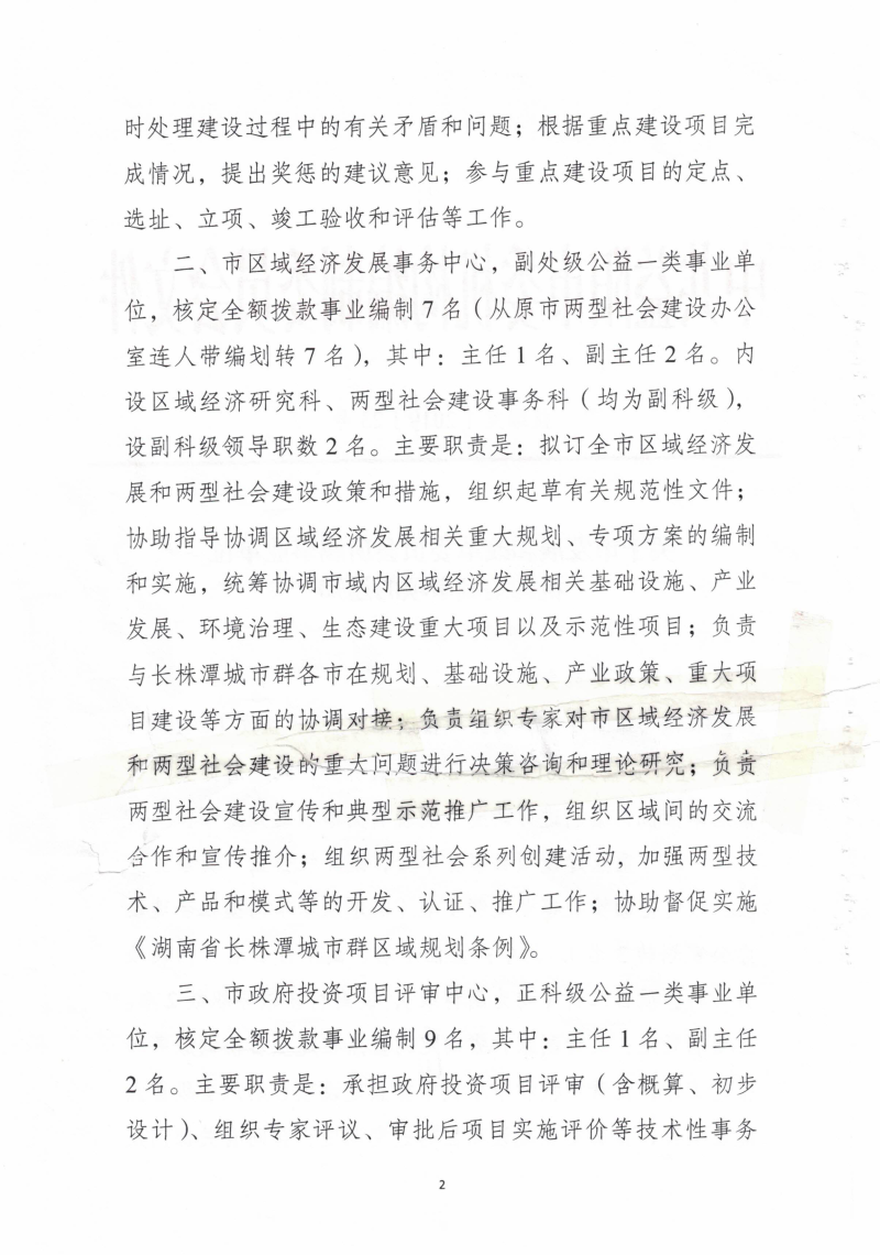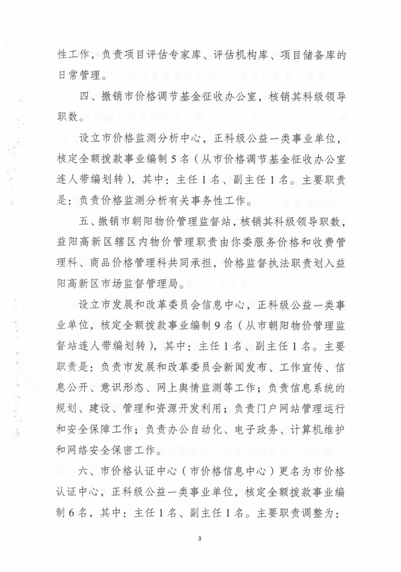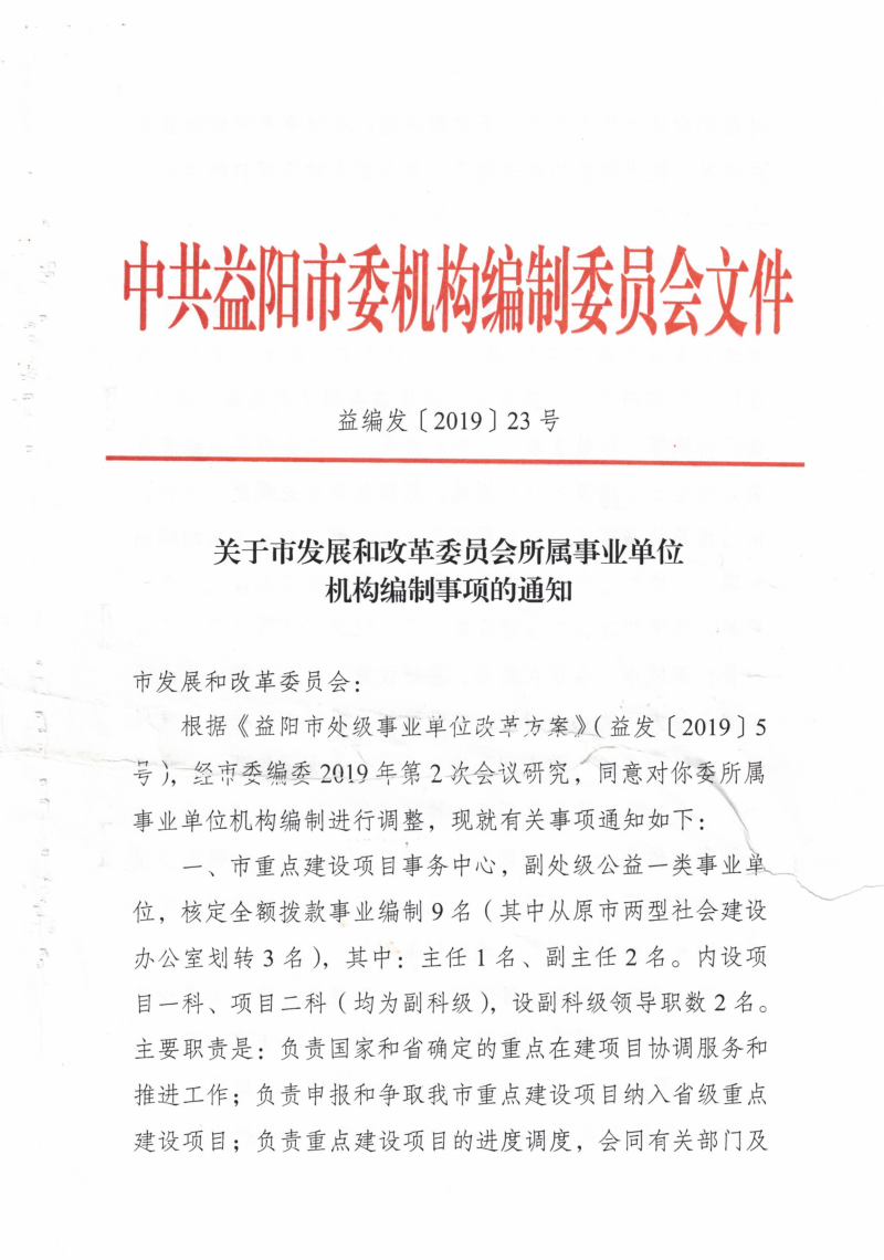 关于市发展和改革委员会所属事业单位机构编制事项的通知