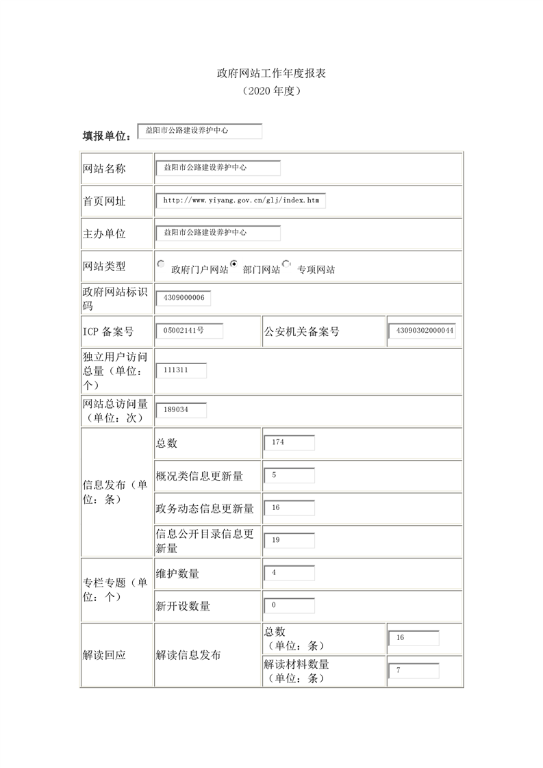 益阳市公路建设养护中心2020年政府网站工作年度报表