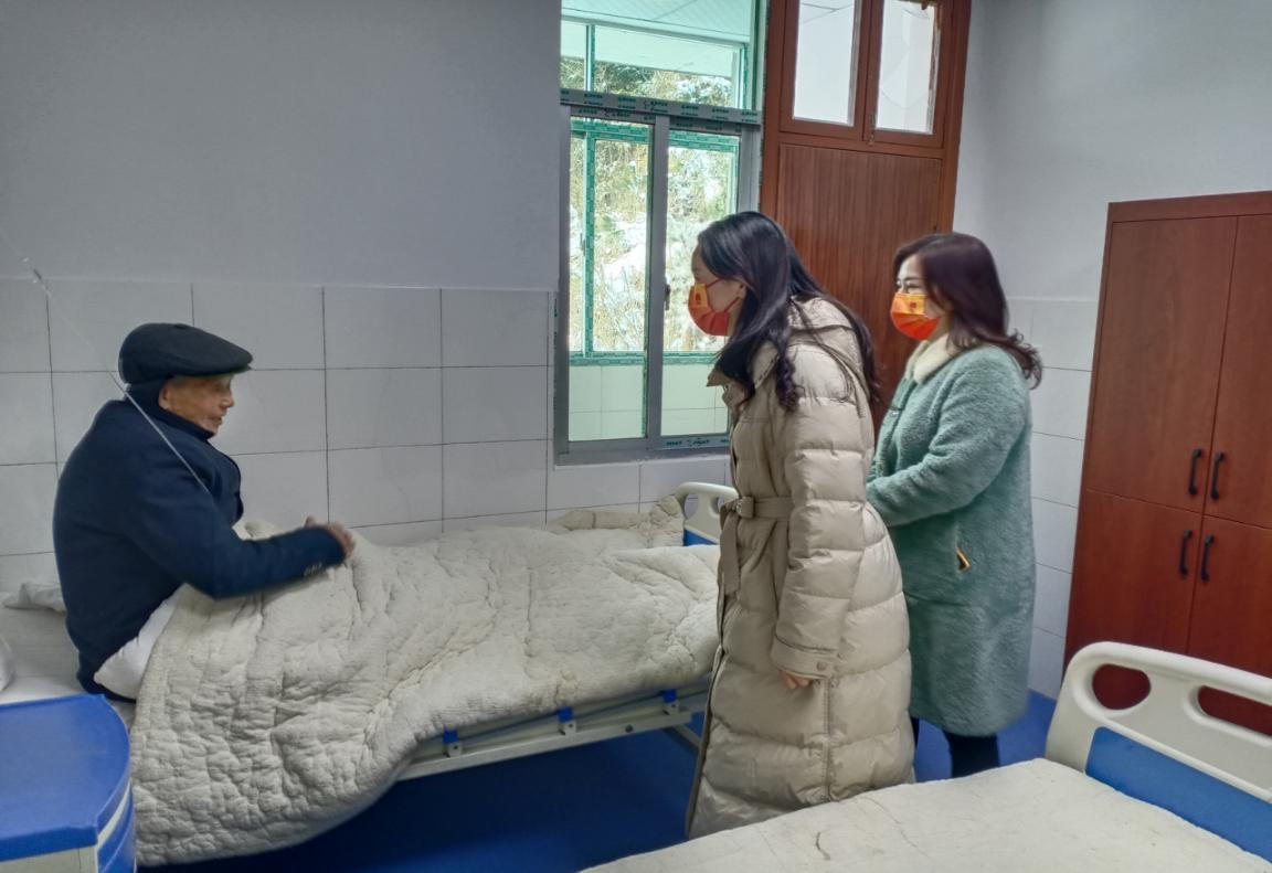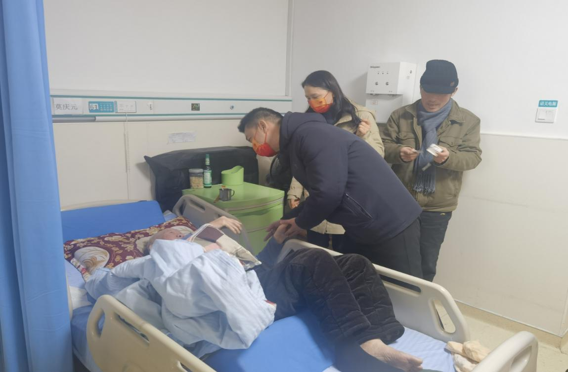 走访期间,正值大雪冰冻的天气,蔡朝阳同志带队到医院看望九十多岁高龄的抗美援朝老战士莫庆元,生活不能自理的莫老激动地握着领导的手、点头微笑着,蔡朝阳详细询问了他的身体状况和住院情况,并代表中心党委送上慰问金和春节的祝福。