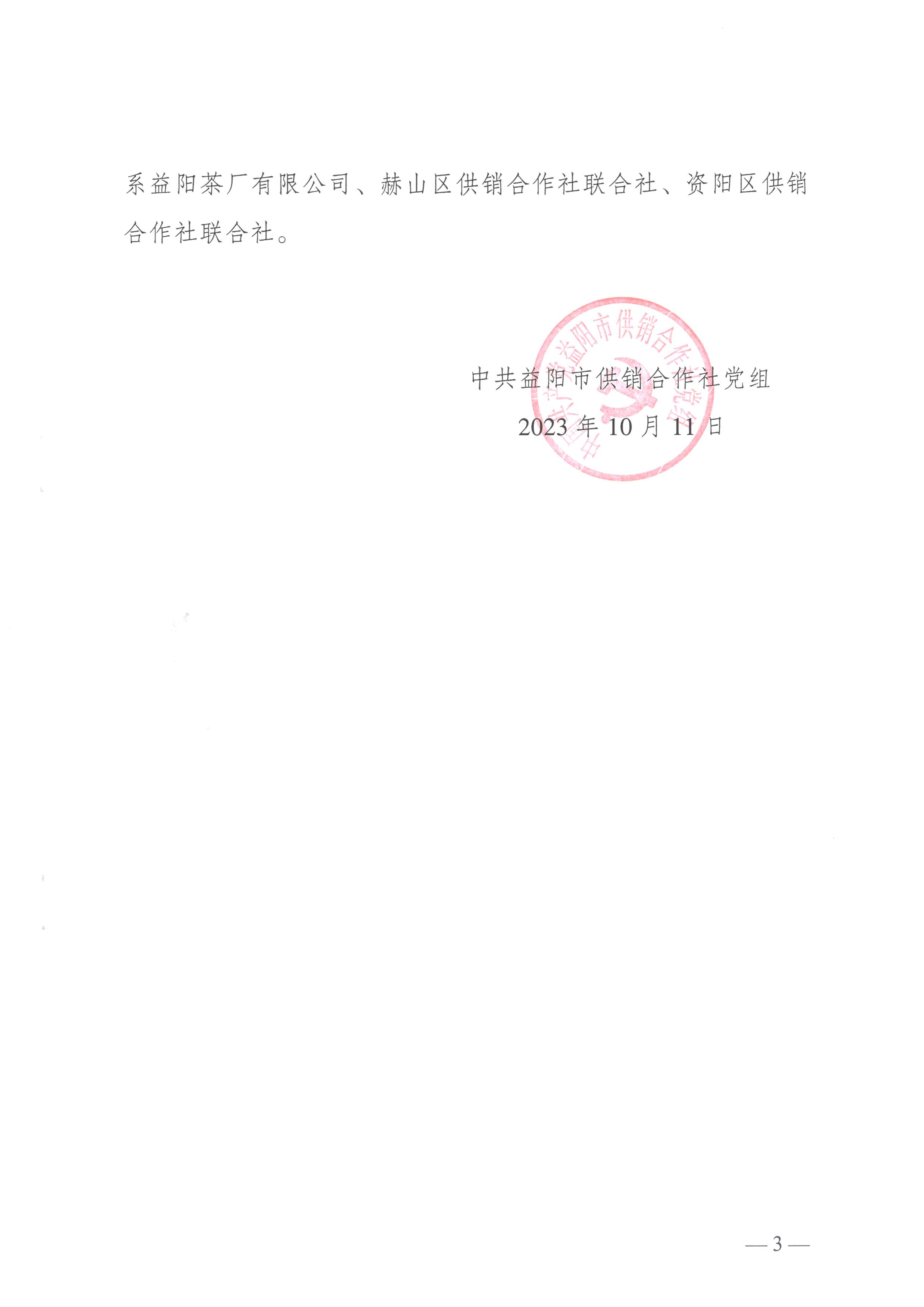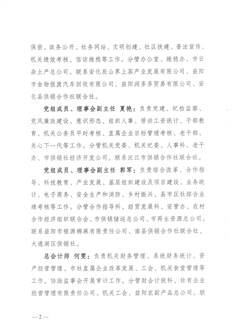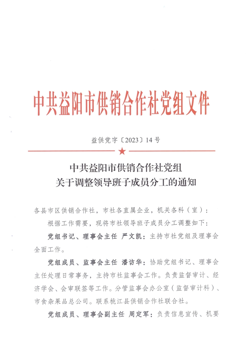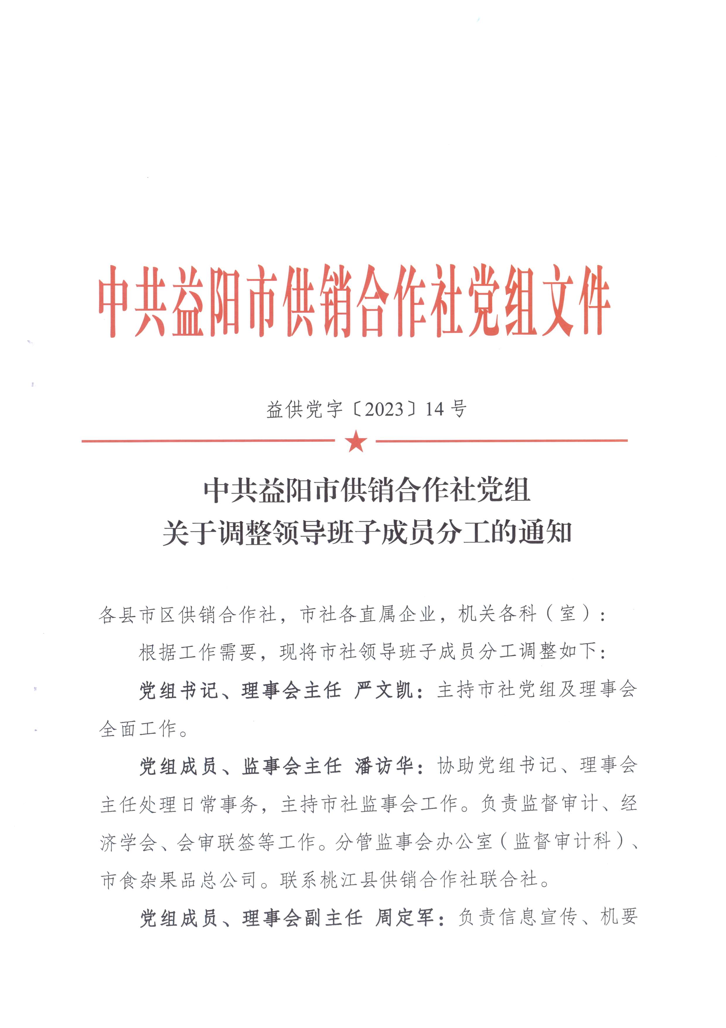 中共益阳市供销合作社党组关于调整领导班子分工的通知