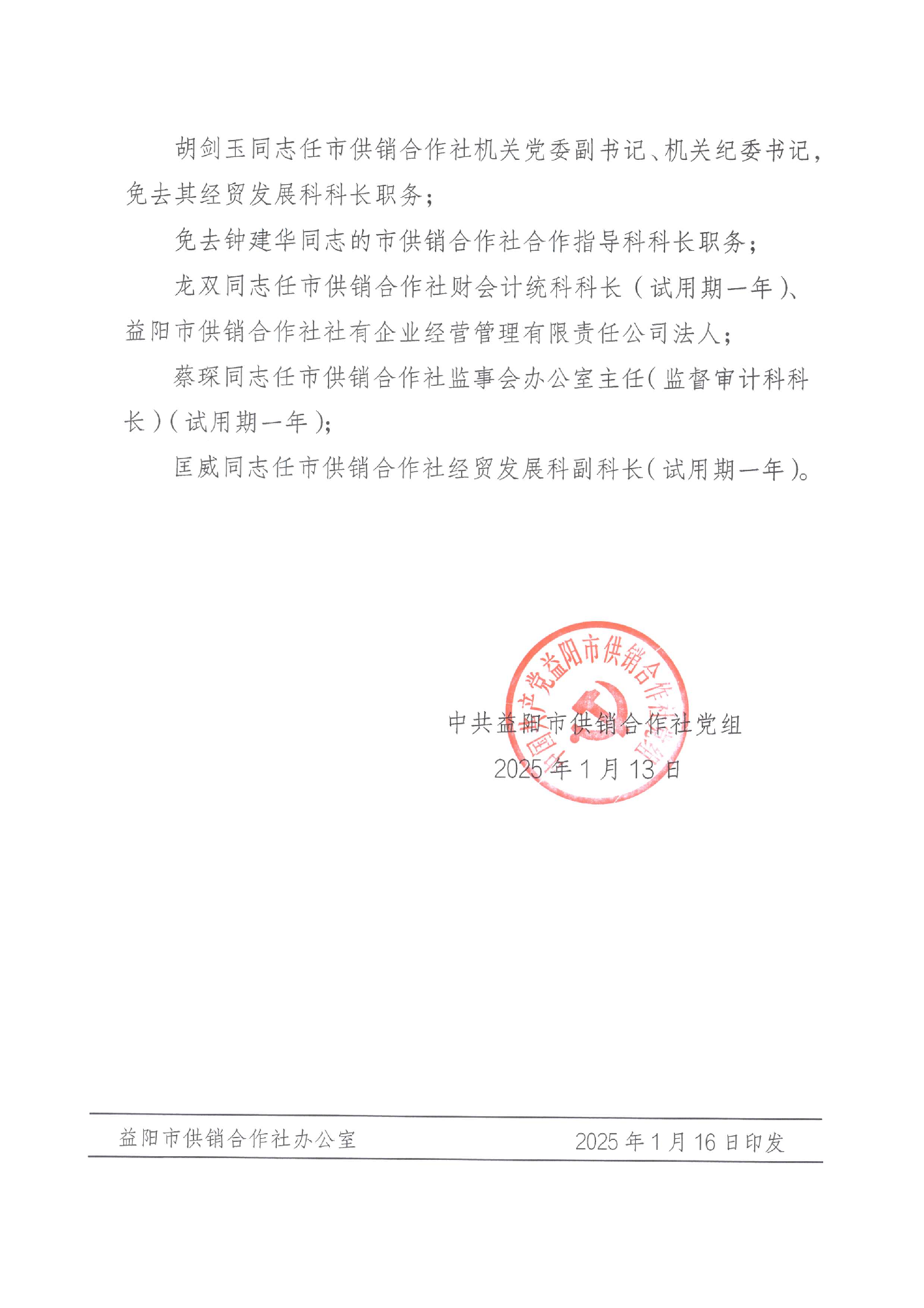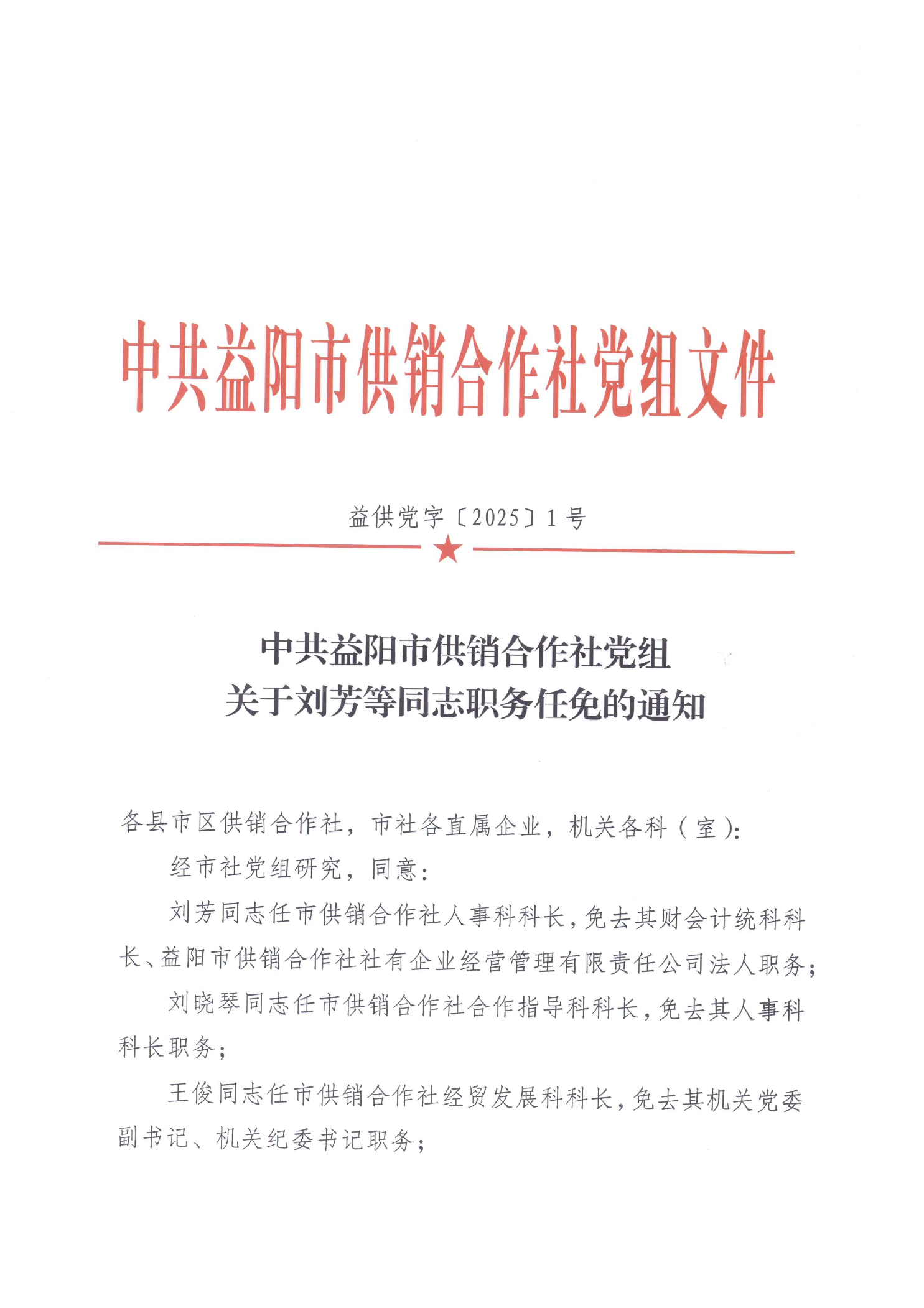中共益阳市供销合作社党组关于刘芳、刘晓琴等同志职务任免的通知