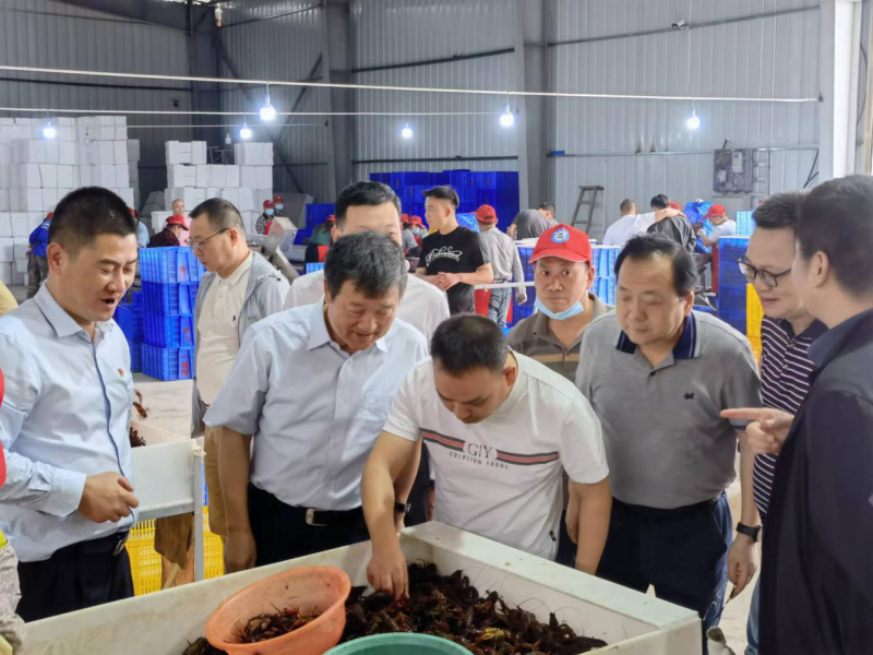 上图为刘湘凌一行在溢香园智慧农业基地了解稻虾种养情况