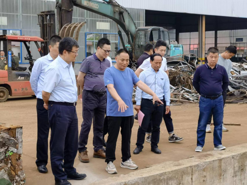上图为刘湘凌主任一行在湖南新三湘再生资源回收有限公司调研再生资源集中打包外销情况