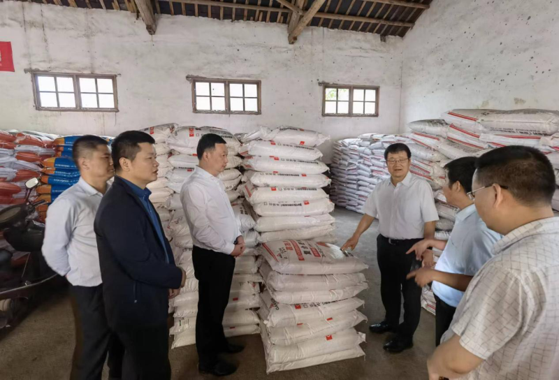 上图为刘湘凌主任一行在南县新三湘农资有限公司仓库了解肥料储备和配送情况