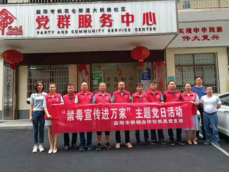 为进一步扩大禁毒宣传覆盖面,提升广大群众的禁毒知识知晓率,充分发挥党员先锋模范带头作用。6月17日,市供销合作社全体党员、入党积极分子前往大桃路社区开展“禁毒宣传进万家”主题党日活动。