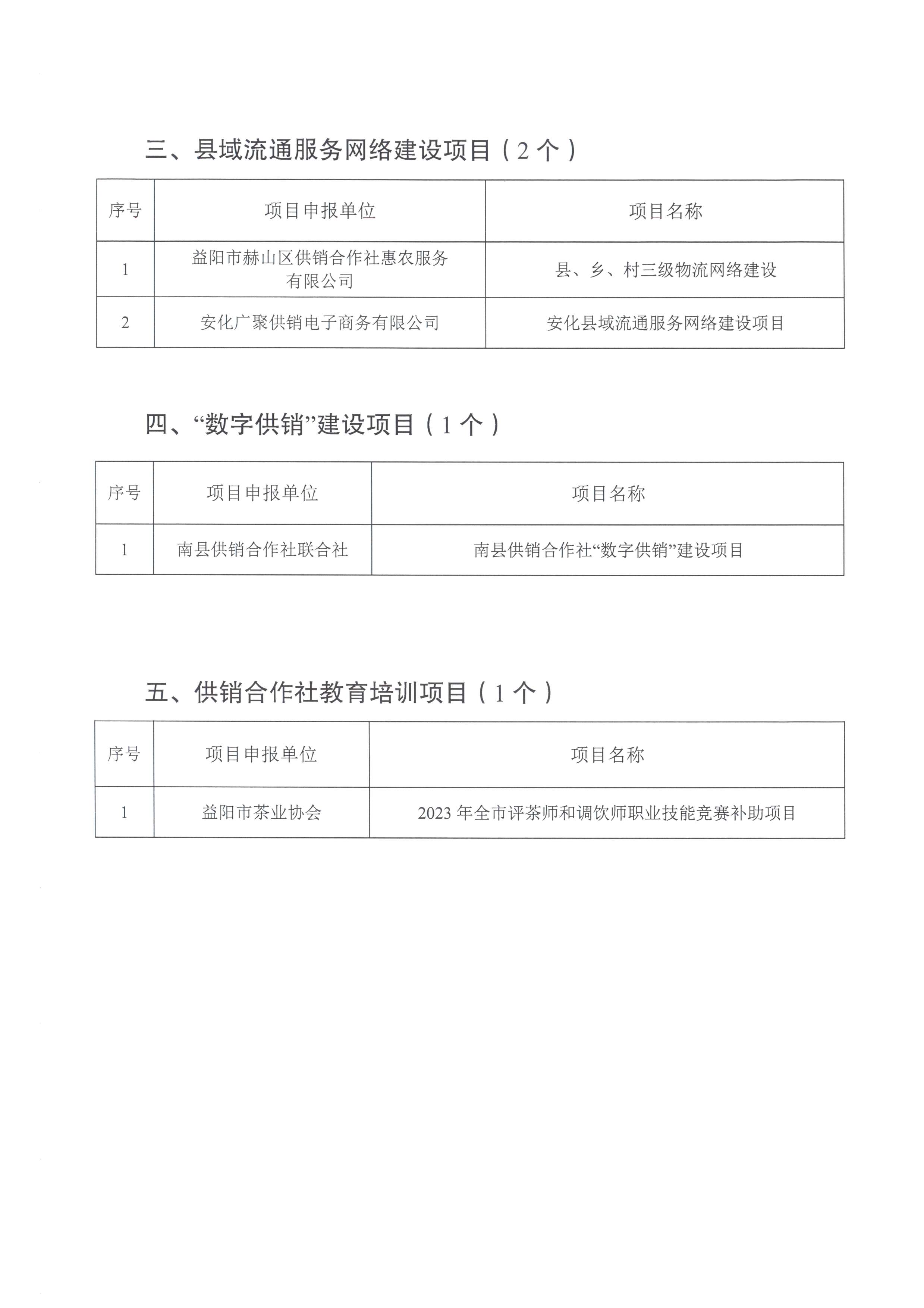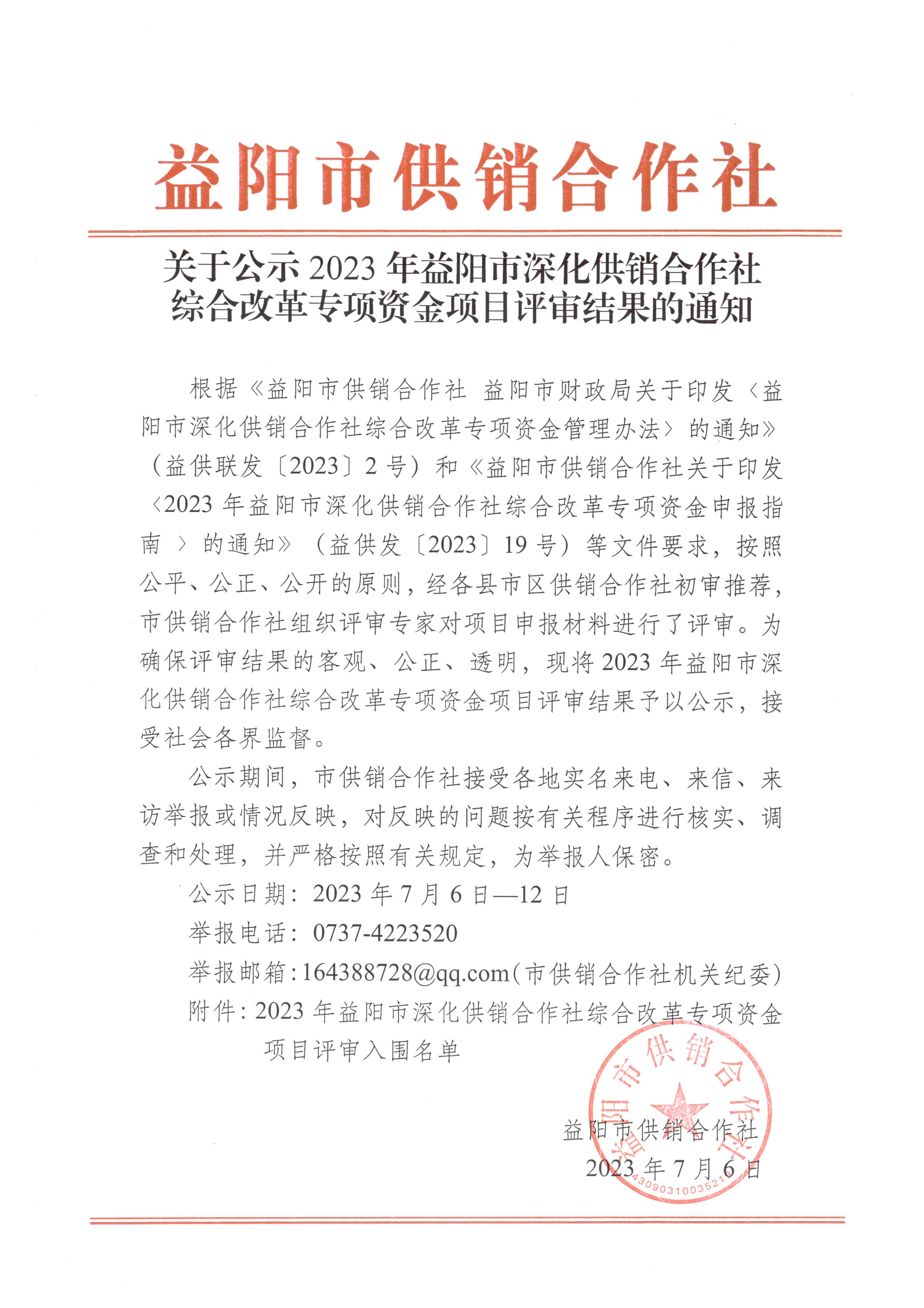 关于公示2023年益阳市深化供销合作社综合改革专项资金项目评审结果的通知