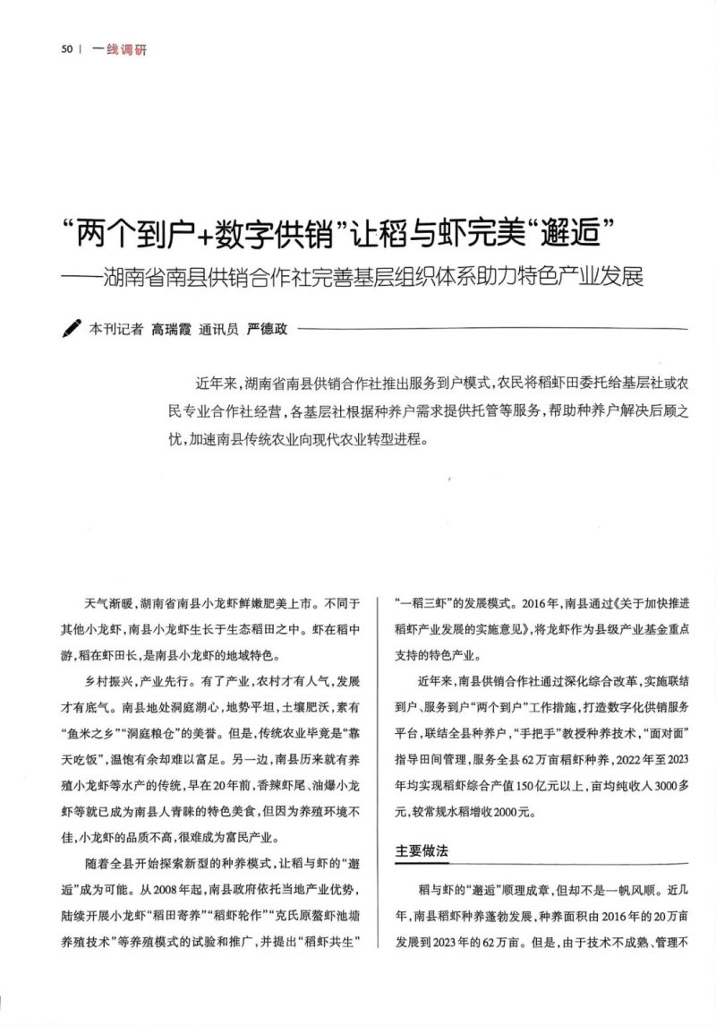 “两个到户+数字供销”让稻与虾完美“邂逅”——南县供销合作社完善基层组织体系助力特色产业发展