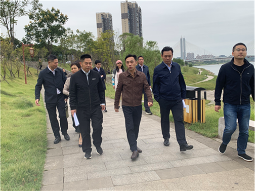 傅小松一行在景观怡然的龙州广场听取了资江风貌带建设的情况介绍,由衷赞叹风貌带的建设给资江两岸风光锦上添花,形成了一幅城水共生的美丽画卷。