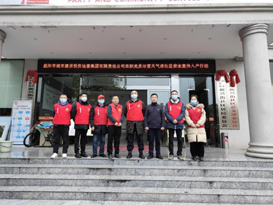 当天下午,城投集团党委委员卜小兵带队,组织6名党员同志到对口联系的资阳区大码头街道新兴街社区开展冰雪天气防冻保暖、安全出行、防火用电安全及防疫等宣传等活动,以责任担当“保供应、保畅通、保平安”,在应对雨雪冰冻一线亮身份、见行动、作贡献。