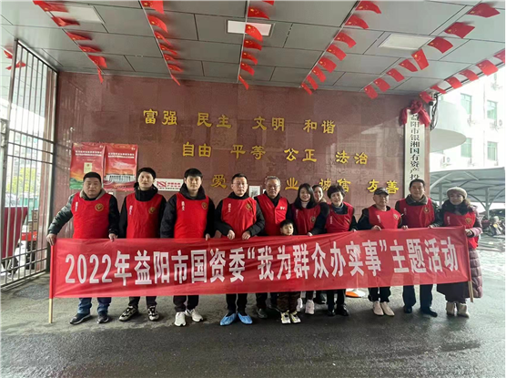 2022年2月9日,根据益阳市委组织部关于在应对低温冰雪天气中发挥党组织战斗堡垒作用和党员干部先锋模范作用的通知要求,市国资委立刻行动,党委委员、副主任文明涛带队,组建了一支党员志愿服务队,前往粟公港结对社区开展志愿服务。第一时间组织开展了防冻防滑、除雪除冰工作,为粟公港社区清扫出一条长达“一公里”的便民路,保障了社区居民安全通行。同时,市国资委党委积极响应市委组织部和创文办工作安排,组织机关全体党员干部开展支部主题党日活动,在机关院内开展清扫积雪活动。
