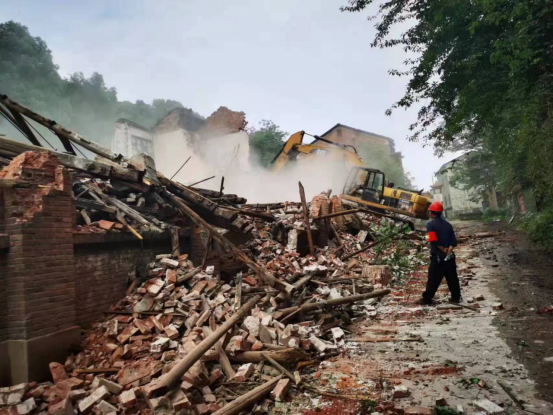 由于整改任务重、时间紧、困难多,公司党委迅速报告市国资委,并对接龙山港社区,5月3日,成立原灯泡总厂灯头分厂解危工作小组,通过张贴公告、登门引导等方式做好住户搬迁思想工作,确定人员、物资完全撤离后,5月17日,将16栋厂房进行了机械拆除,对百米住宿楼和鸳鸯住宿楼的过道、大门进行了砌砖封闭,并在醒目处粘贴“房屋危险,请勿靠近”标识和安全公告,原灯泡总厂灯头分厂解危封闭工作顺利完成。