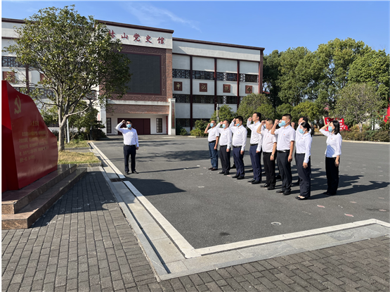 在金家堤支部旧址广场,面对鲜红的党旗,全体党员庄严地举起右手,重温入党誓词,“我志愿加入中国共产党,坚决拥护党的章程……永不叛党!”句句铿锵有力,声声入耳入心。