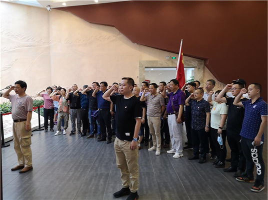 在秋收起义文家市会师旧址纪念馆,党支部书记王凯球宣读《新批准的预备党员名单》,并带领新发展的预备党员面向党旗光荣宣誓,全体党员高举右手,重温入党誓词,牢记初心使命。
