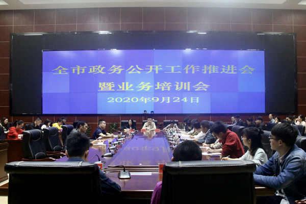 为认真学习贯彻落实新修订的《中华人民共和国政府信息公开条例》,总结今年以来政务公开工作,部署下阶段工作,进一步提高全市政务公开工作质量和水平,9月24日,全市政务公开工作推进会暨业务培训会召开,各区县(市)政府办政务公开工作负责人和专干、市直相关部门政务公开工作专干参加会议。市政府副秘书长、市政务公开办主任杨禄仁出席会议并讲话。