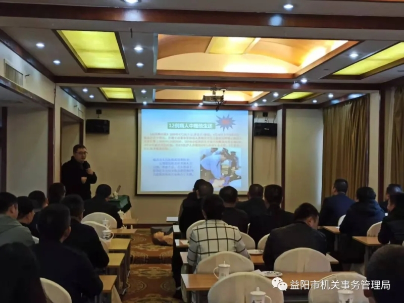 益阳康雅医院急诊科主任张金以“常见意外疾病急救与自救”为题,通过实例讲解,阐述了如何运用正确的方法实施应急救援,还向大家讲解了急救过程中的注意事项,同时普及了日常生活中有害健康的八种行为和影响健康的十大恶习等。讲课以实际操作为主,方式简洁、生动,让大家直观地了解急救的基本要领。现场还邀请了驾驶员进行实际操作,掌握手法技巧,现场互动气氛热烈。
