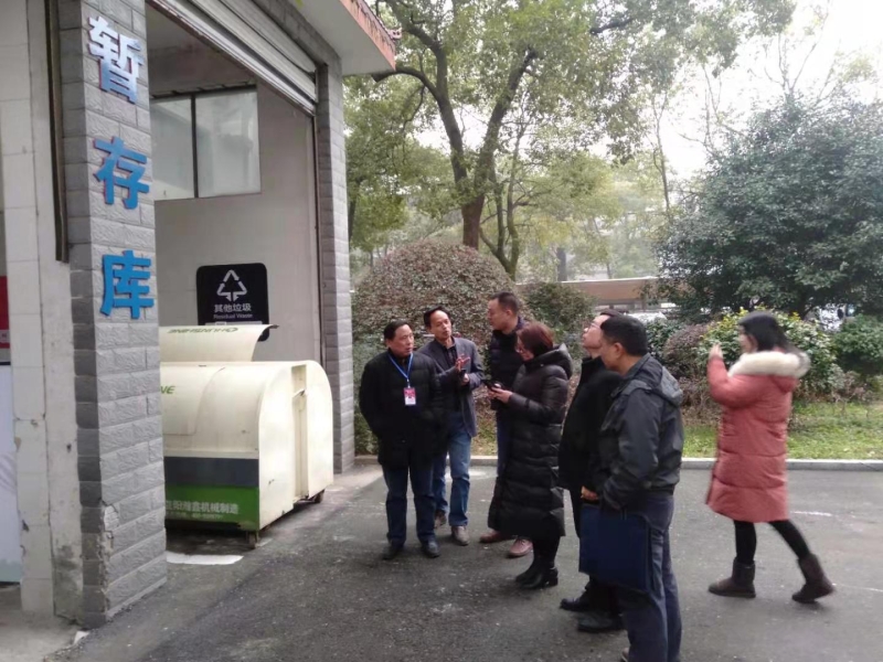 16上午,省住建厅专家组一行来资阳区示范片检查验收公共机构垃圾分类工作,市、区相关领导同志陪同检查。