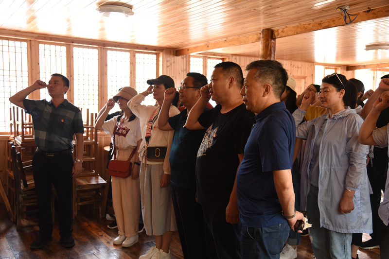 在云台山下,全体党员胸戴党徽,在办公室主任喻理科的带领下重温了入党誓词,切实增强了党性意识。党员干部们实地参观了黑茶博物馆,了解了安化黑茶文化的历史由来。随后到万隆黑茶产业园熟悉了黑茶生产工艺流程,游览了茶乡花海生态文化体验园,深切感受到了精准扶贫带给安化县的巨大改变,充分体现了产业与文化相融合,经济与科技相结合对经济社会发展所带来的促进作用。