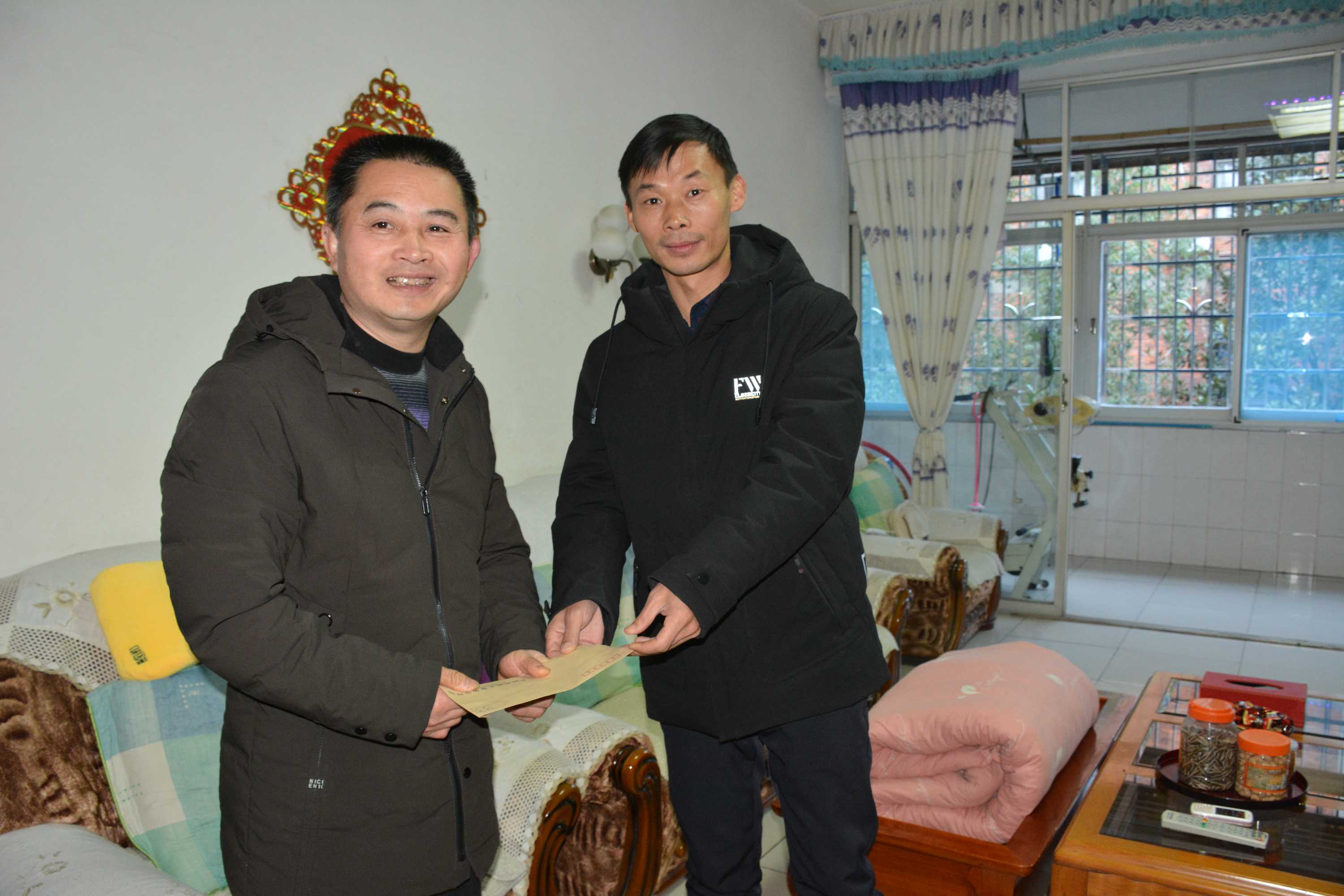 新春送祝福,情深暖人心。1月16日上午,市机关事务局开展2020年“迎新春送温暖”慰问活动。局党组成员、副局长李斌、刘芳、蔡杰锋一行到梓山村水库困难职工和特困残疾人家中走访慰问,为困难群众送上党和政府的关心鼓励,帮助大家温暖过冬、温馨过节。同时借此机会向社会传递正能量,呼吁全社会关注弱势群体。本次活动共慰问困难职工10户、发放慰问金5000元。